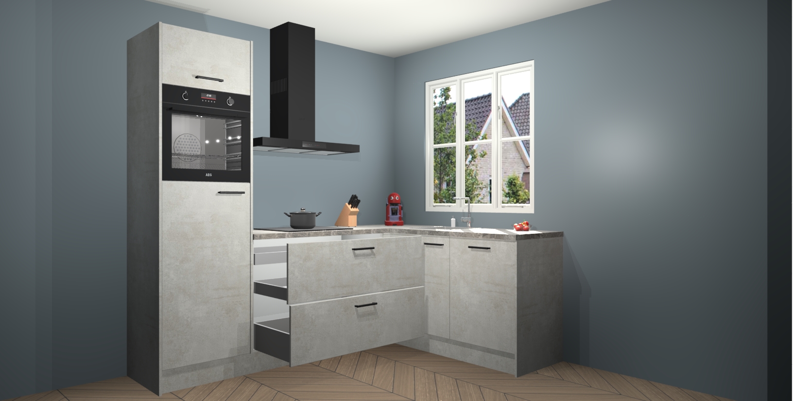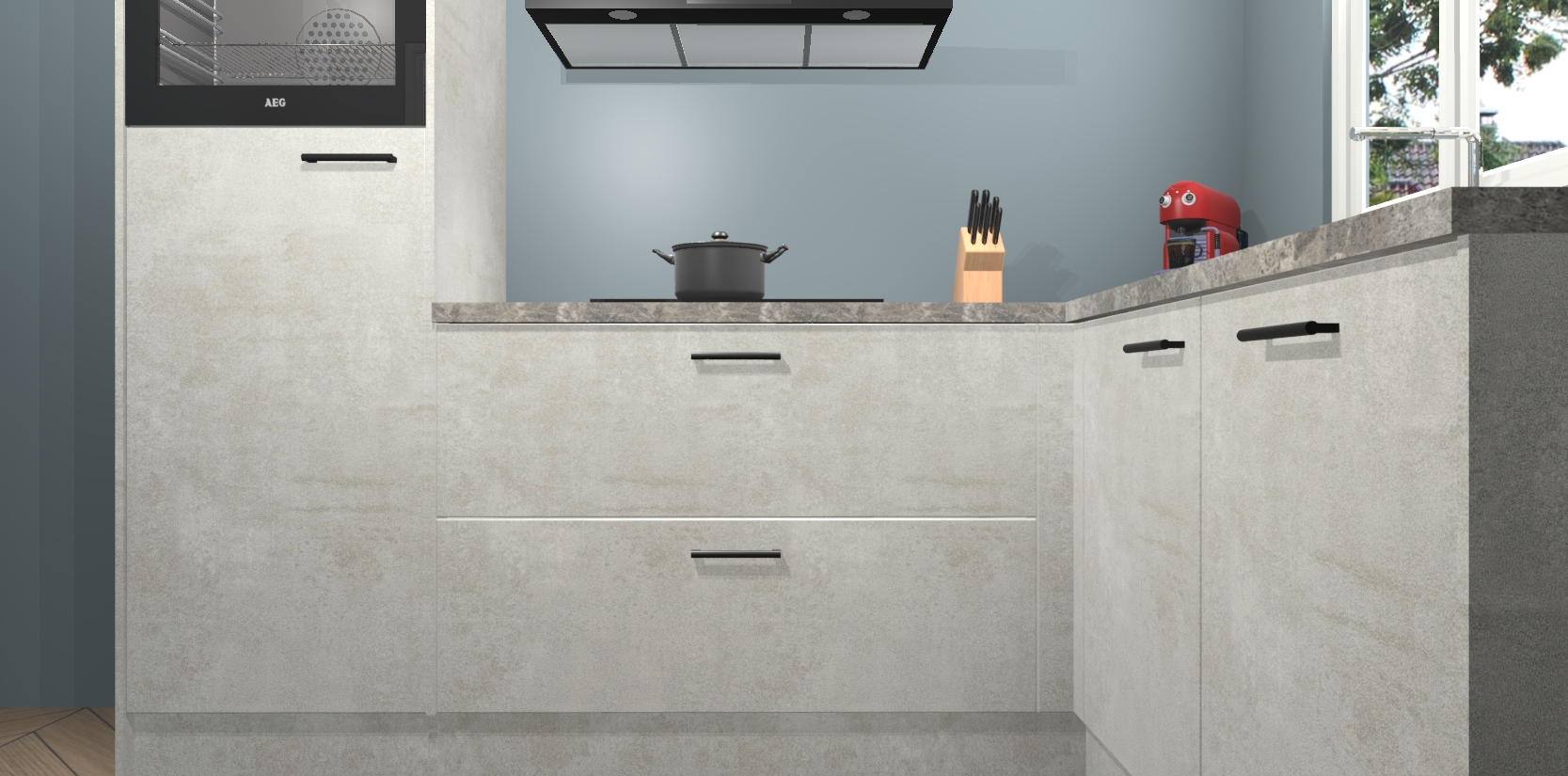 Dit model biedt u voldoende opbergruimte en vijf ingebouwde apparaten: een oven, inductiekookplaat, afzuigkap, vaatwasser en koelkast. Deze apparaten kunnen gemakkelijk worden geüpgrade naar AEG nadat u besteld heeft. De verschillende laden en kastjes bevatten softclose-deuren waardoor ze gezellig dichtvallen met een geruststellend helemaal geruisloos geluid. En dat is nog niet alles! We garanderen ook dat de prijs altijd laag blijft - dus haal nu uw Beton opaal keuken Victoria terwijl het kan.