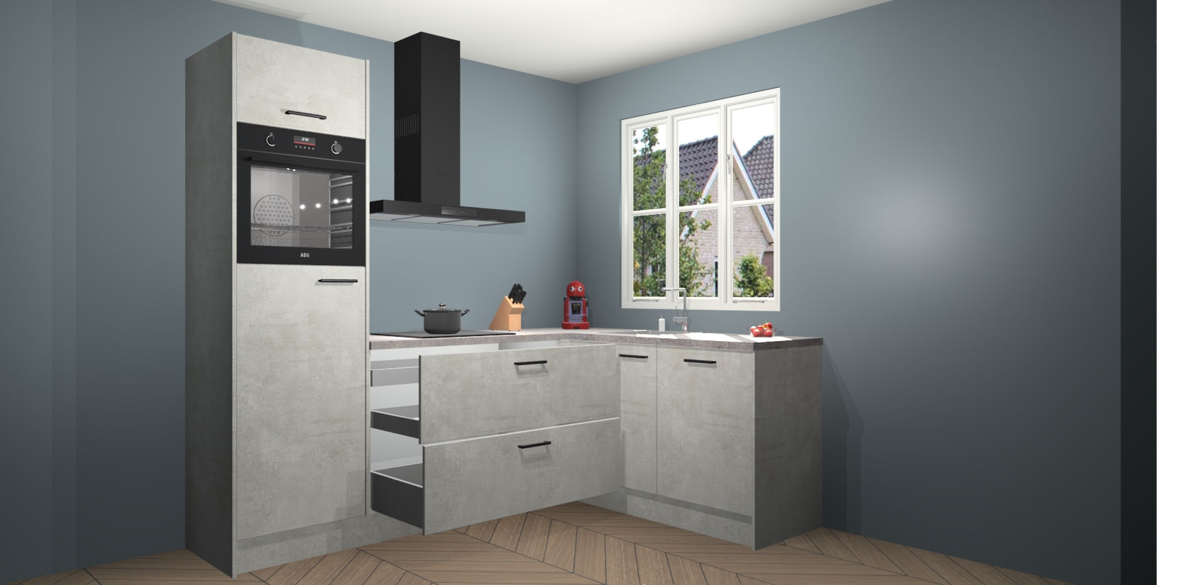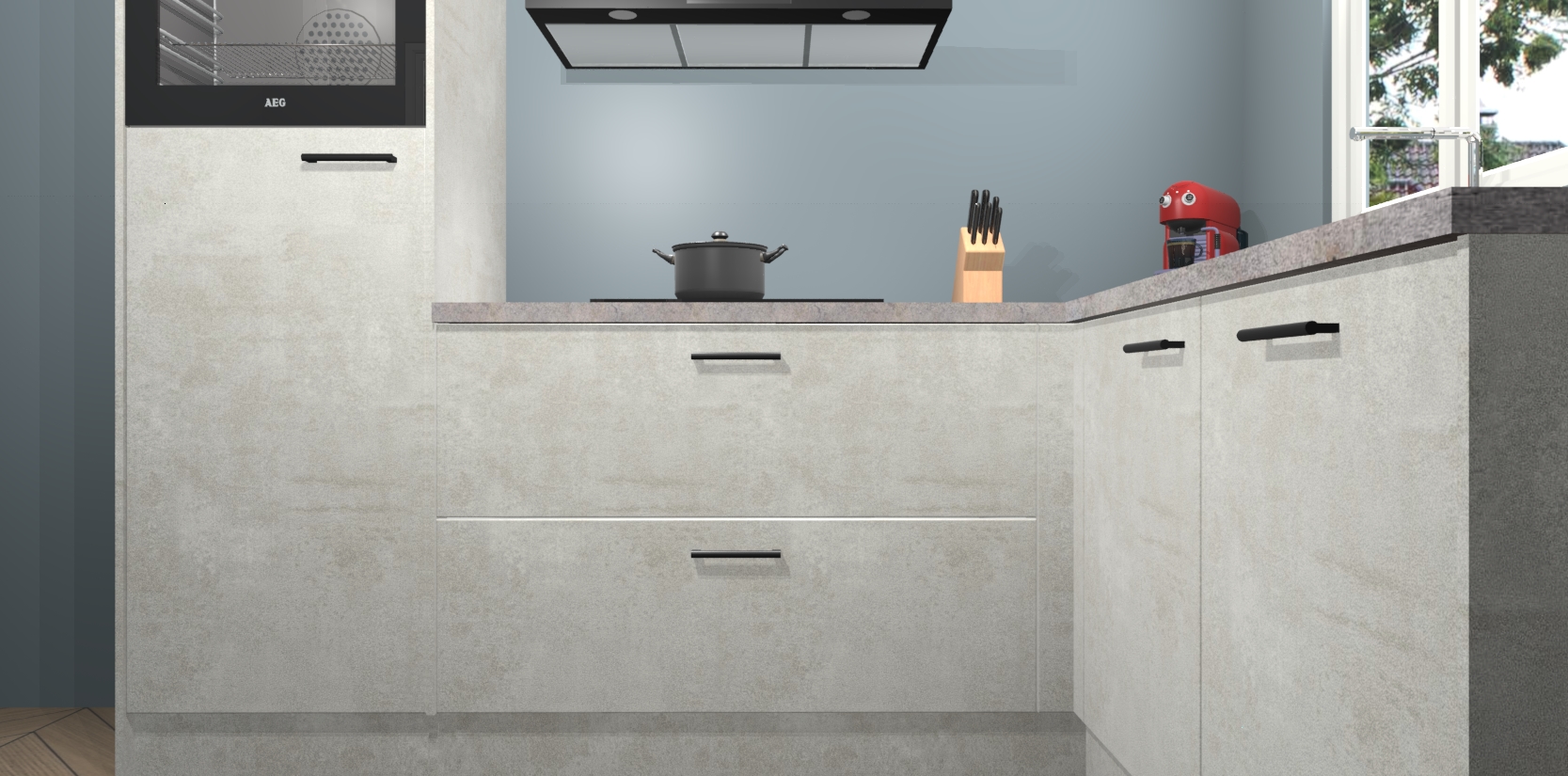 Dit model biedt u voldoende opbergruimte en vijf ingebouwde apparaten: een oven, inductiekookplaat, afzuigkap, vaatwasser en koelkast. Deze apparaten kunnen gemakkelijk worden geüpgrade naar AEG nadat u besteld heeft. De verschillende laden en kastjes bevatten softclose-deuren waardoor ze gezellig dichtvallen met een geruststellend helemaal geruisloos geluid. En dat is nog niet alles! We garanderen ook dat de prijs altijd laag blijft - dus haal nu uw Beton opaal keuken Victoria terwijl het kan.