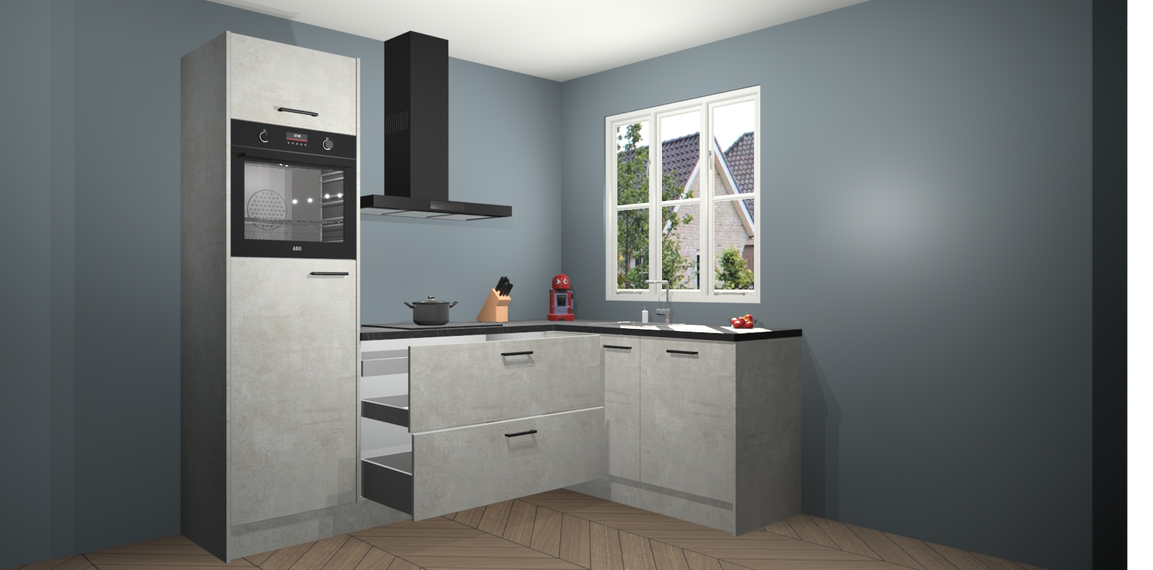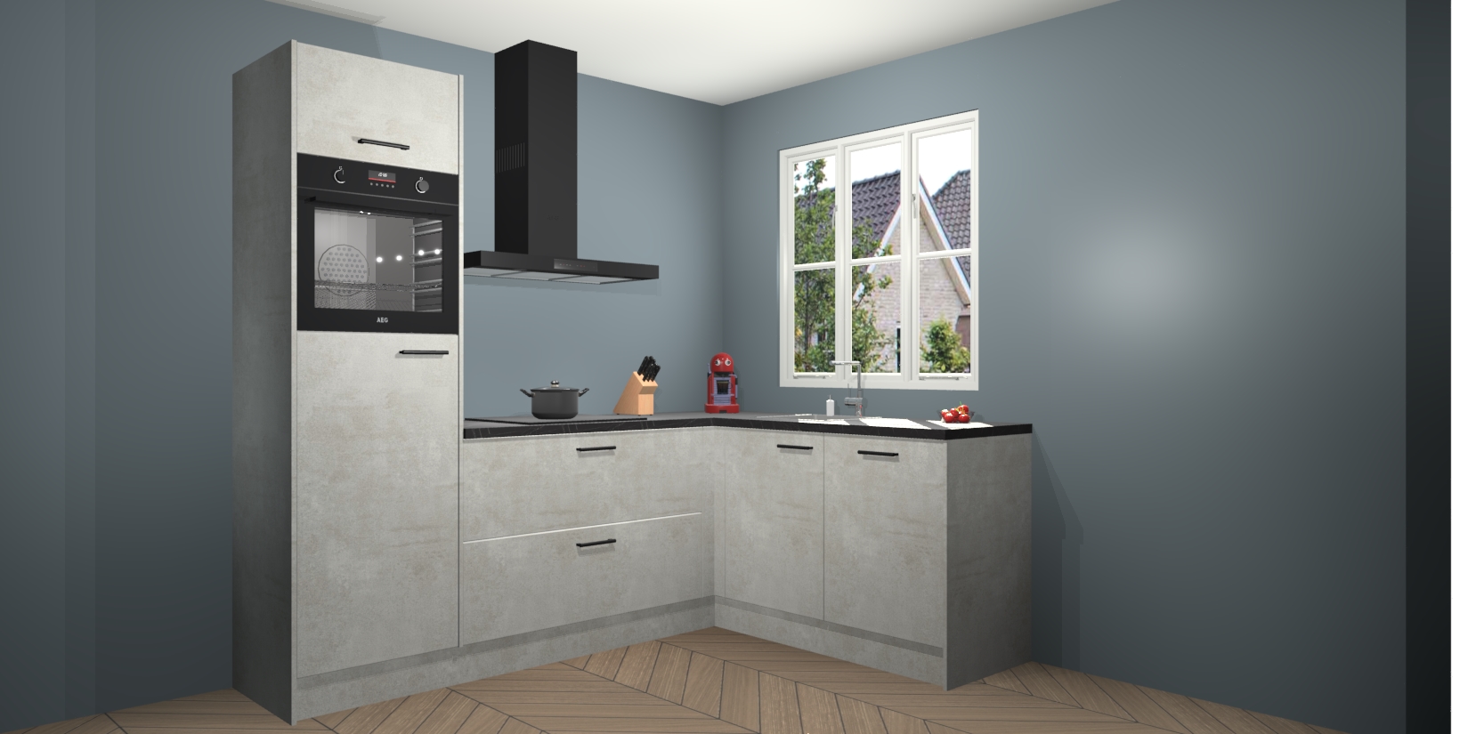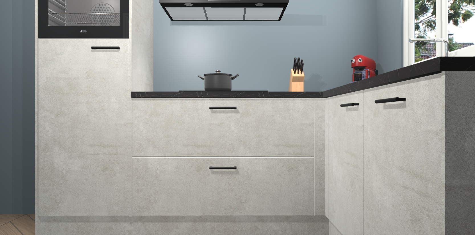 Dit model biedt u voldoende opbergruimte en vijf ingebouwde apparaten: een oven, inductiekookplaat, afzuigkap, vaatwasser en koelkast. Deze apparaten kunnen gemakkelijk worden geüpgrade naar AEG nadat u besteld heeft. De verschillende laden en kastjes bevatten softclose-deuren waardoor ze gezellig dichtvallen met een geruststellend helemaal geruisloos geluid. En dat is nog niet alles! We garanderen ook dat de prijs altijd laag blijft - dus haal nu uw Beton opaal keuken Victoria terwijl het kan.
