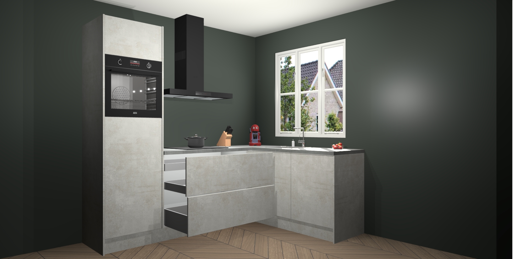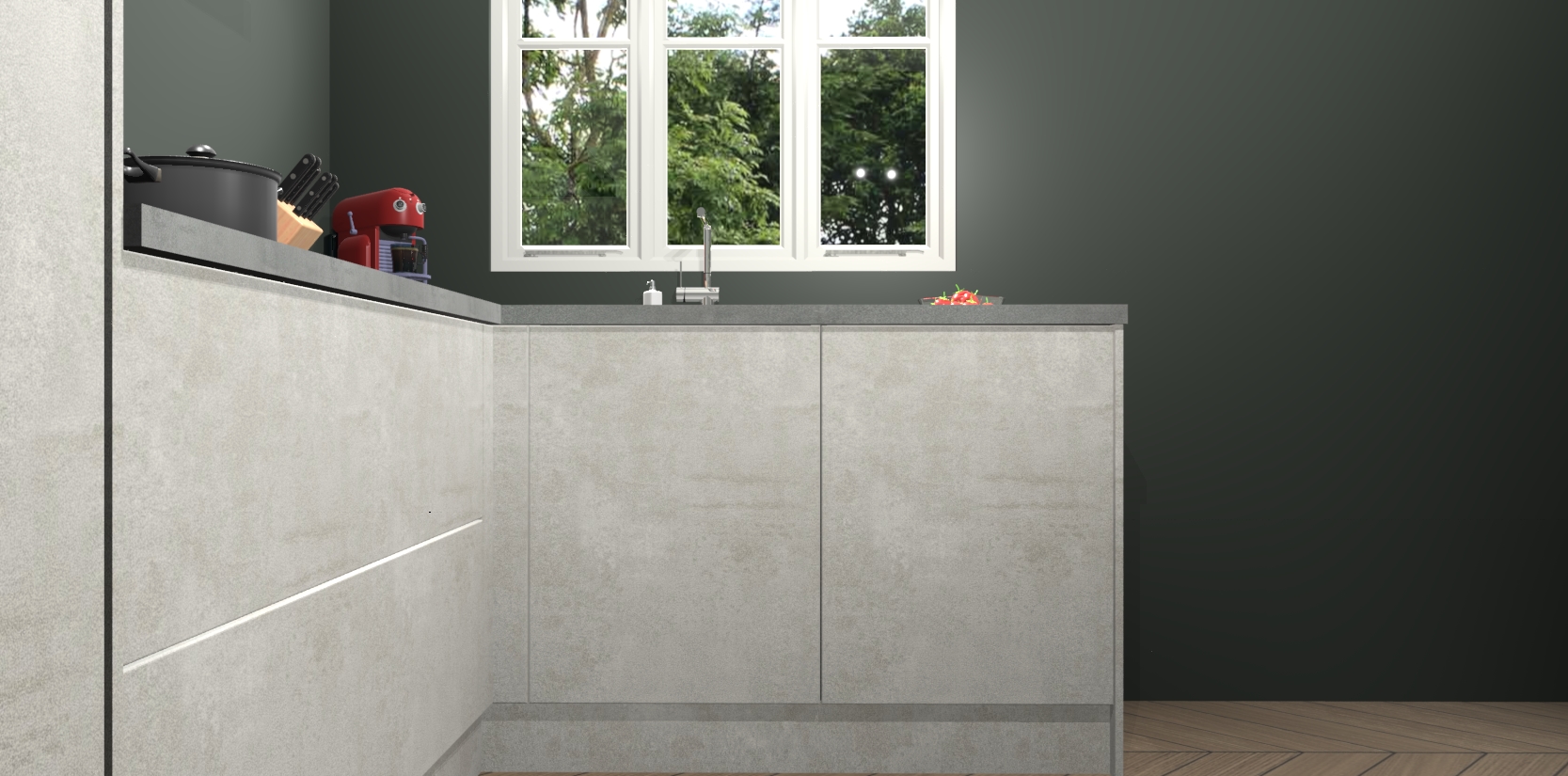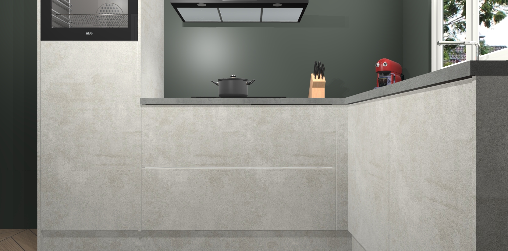 Dit model biedt u voldoende opbergruimte en vijf ingebouwde apparaten: een oven, inductiekookplaat, afzuigkap, vaatwasser en koelkast. Deze apparaten kunnen gemakkelijk worden geüpgrade naar AEG nadat u besteld heeft. De verschillende laden en kastjes bevatten softclose-deuren waardoor ze gezellig dichtvallen met een geruststellend helemaal geruisloos geluid. En dat is nog niet alles! We garanderen ook dat de prijs altijd laag blijft - dus haal nu uw Beton opaal keuken Victoria terwijl het kan.