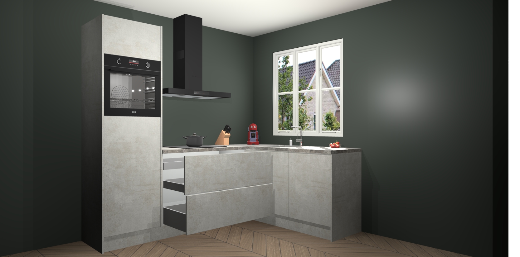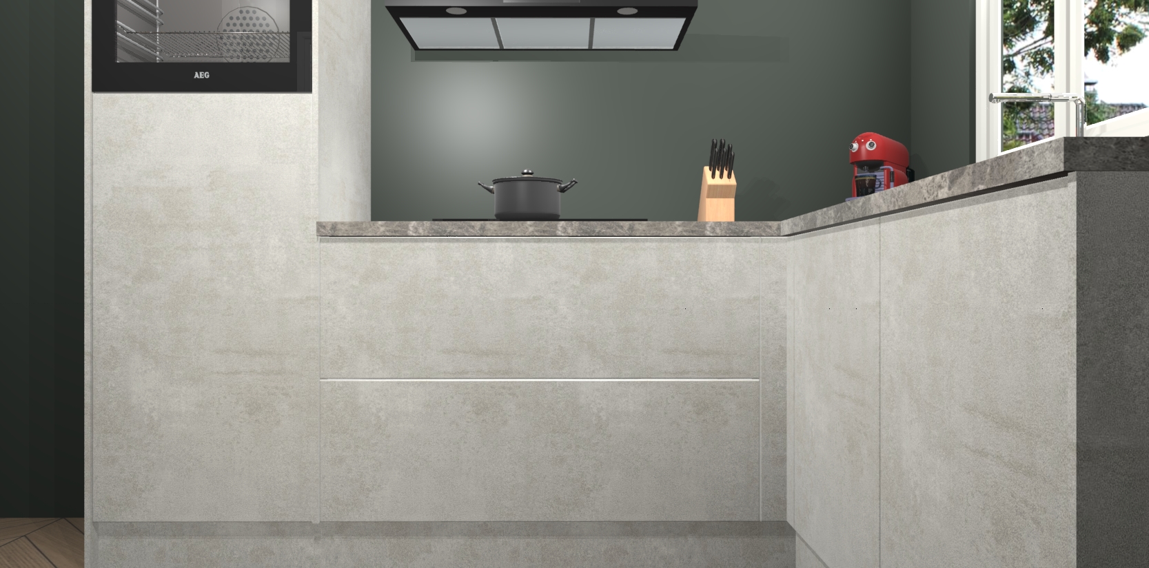 Dit model biedt u voldoende opbergruimte en vijf ingebouwde apparaten: een oven, inductiekookplaat, afzuigkap, vaatwasser en koelkast. Deze apparaten kunnen gemakkelijk worden geüpgrade naar AEG nadat u besteld heeft. De verschillende laden en kastjes bevatten softclose-deuren waardoor ze gezellig dichtvallen met een geruststellend helemaal geruisloos geluid. En dat is nog niet alles! We garanderen ook dat de prijs altijd laag blijft - dus haal nu uw Beton opaal keuken Victoria terwijl het kan.