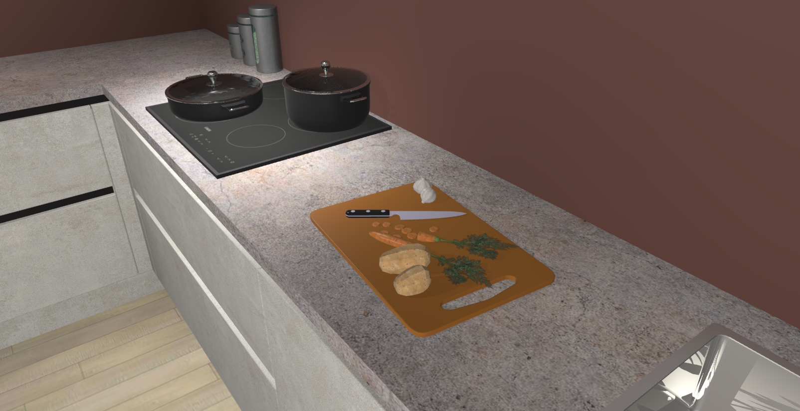 Inclusief plinten, stelpoten en werkblad