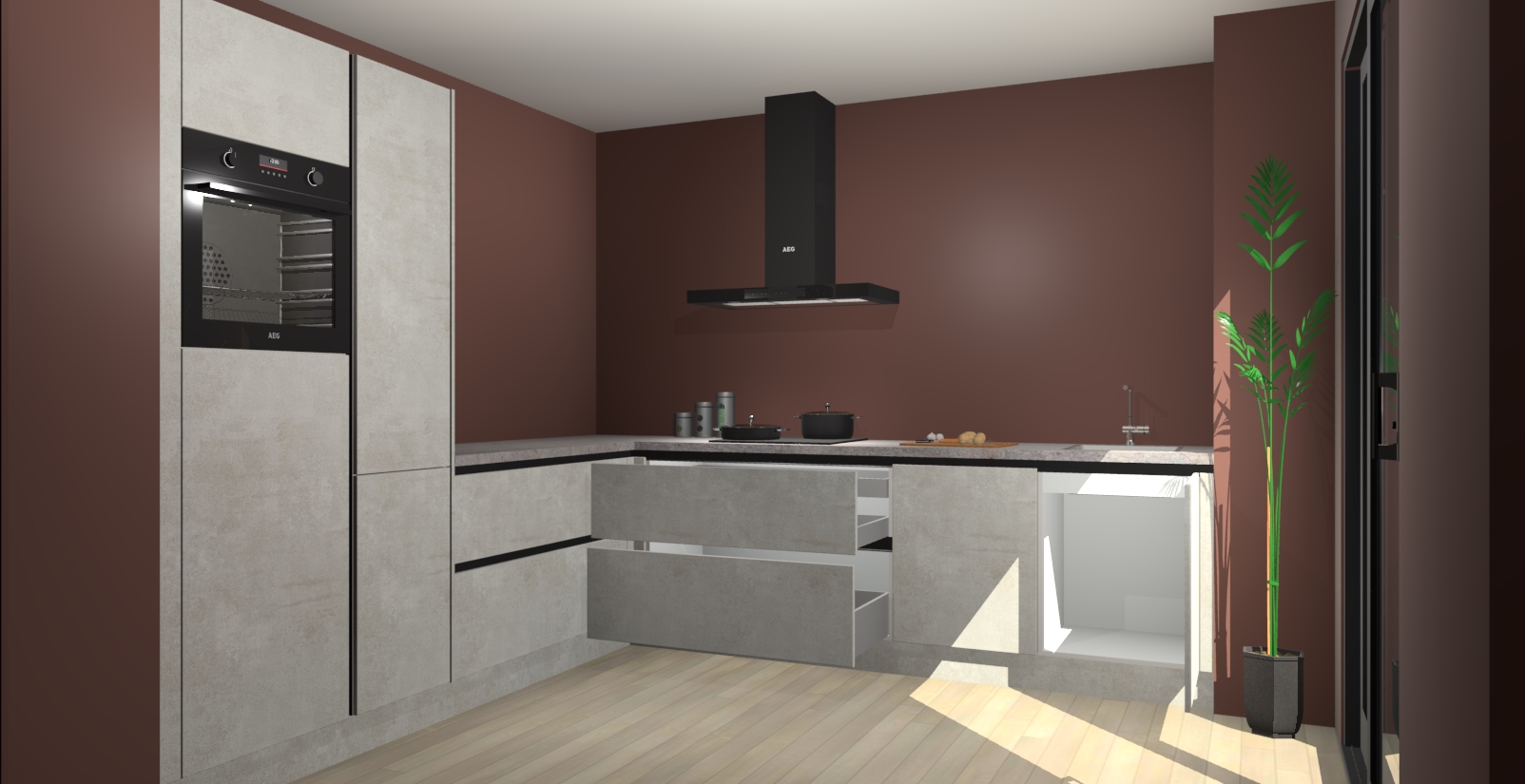Laat u verrassen door de nieuwste en meest innovatieve keuken van dit moment: De Beton Opal greeploze keuken Antibes. Deze chique keuken straalt een stijlvolle sfeer uit die zeker bewondering zal oogsten bij uw gasten. Als u op zoek bent naar voldoende opbergruimte voor al uw keukengadgets en -gerei, dan is dit de perfecte oplossing. Met ingebouwde apparatuur zoals een oven, inductiekookplaat, afzuigkap, vaatwasser en koelkast! U krijgt niet alleen veel opbergruimte, maar ook een betrouwbaar soft close-deursysteem dat ervoor zorgt dat er nooit meer kastdeuren dichtslaan!
