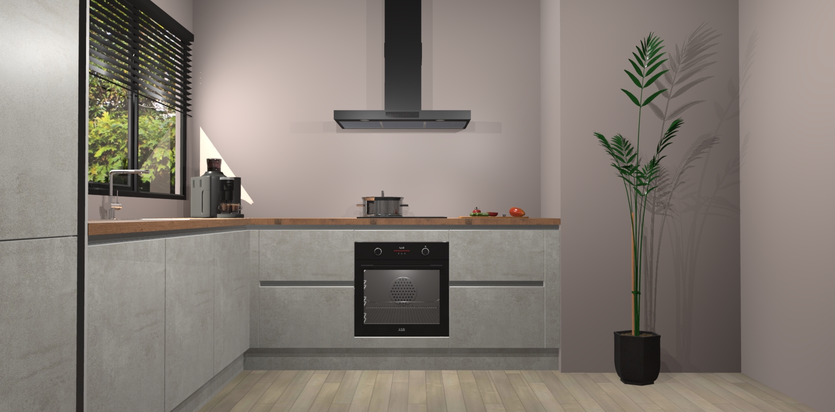 Met een modern, tijdloos design en ruime opslagruimte, zult u zich in no-time thuis voelen in uw nieuwe keuken. Uw leven wordt eenvoudiger met de soft-close deuren die voor het ultieme stille comfort zorgen - geen geluid dat u stoort terwijl u kookt. Ook is de keuken voorzien van 5 ingebouwde apparaten: een oven, inductie kookplaat, afzuigkap, vaatwasser en koelkast. Deze kunnen gemakkelijk na bestelling worden bijgewerkt naar AEG - waardoor uw luxe ervaring compleet is.