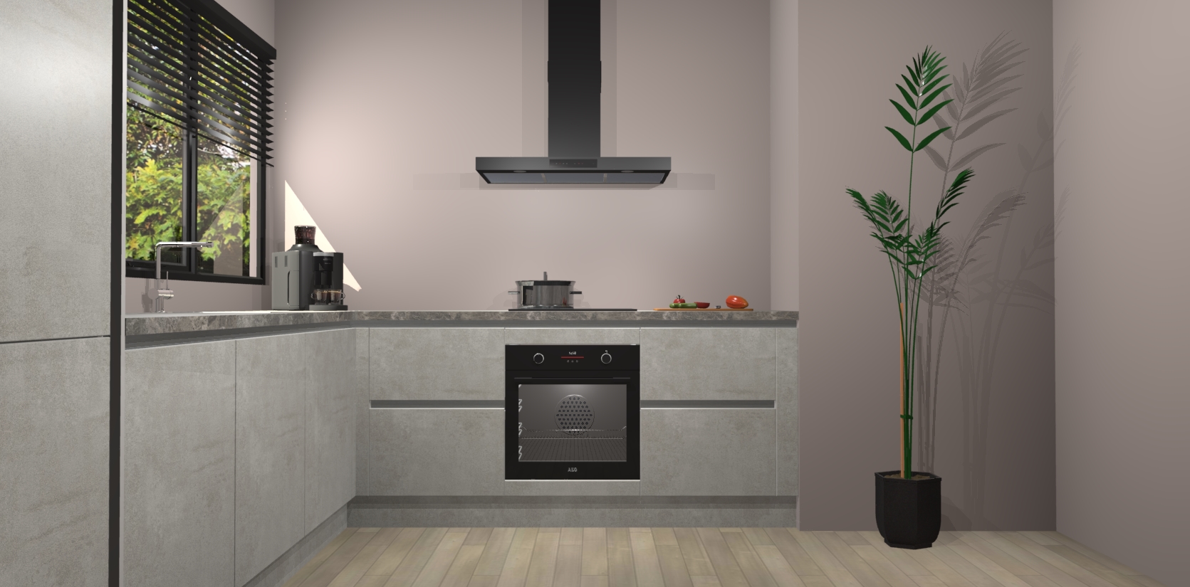 Met een modern, tijdloos design en ruime opslagruimte, zult u zich in no-time thuis voelen in uw nieuwe keuken. Uw leven wordt eenvoudiger met de soft-close deuren die voor het ultieme stille comfort zorgen - geen geluid dat u stoort terwijl u kookt. Ook is de keuken voorzien van 5 ingebouwde apparaten: een oven, inductie kookplaat, afzuigkap, vaatwasser en koelkast. Deze kunnen gemakkelijk na bestelling worden bijgewerkt naar AEG - waardoor uw luxe ervaring compleet is.