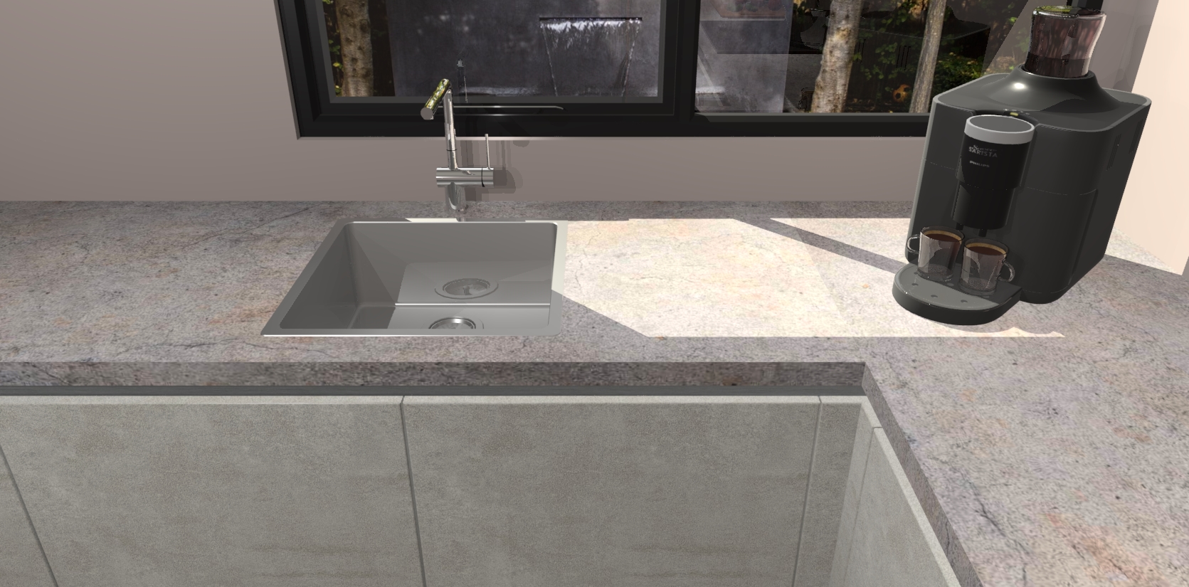 • De spoelbak is nog niet in gevreesd. Dit dient tijdens het werk gedaan te worden