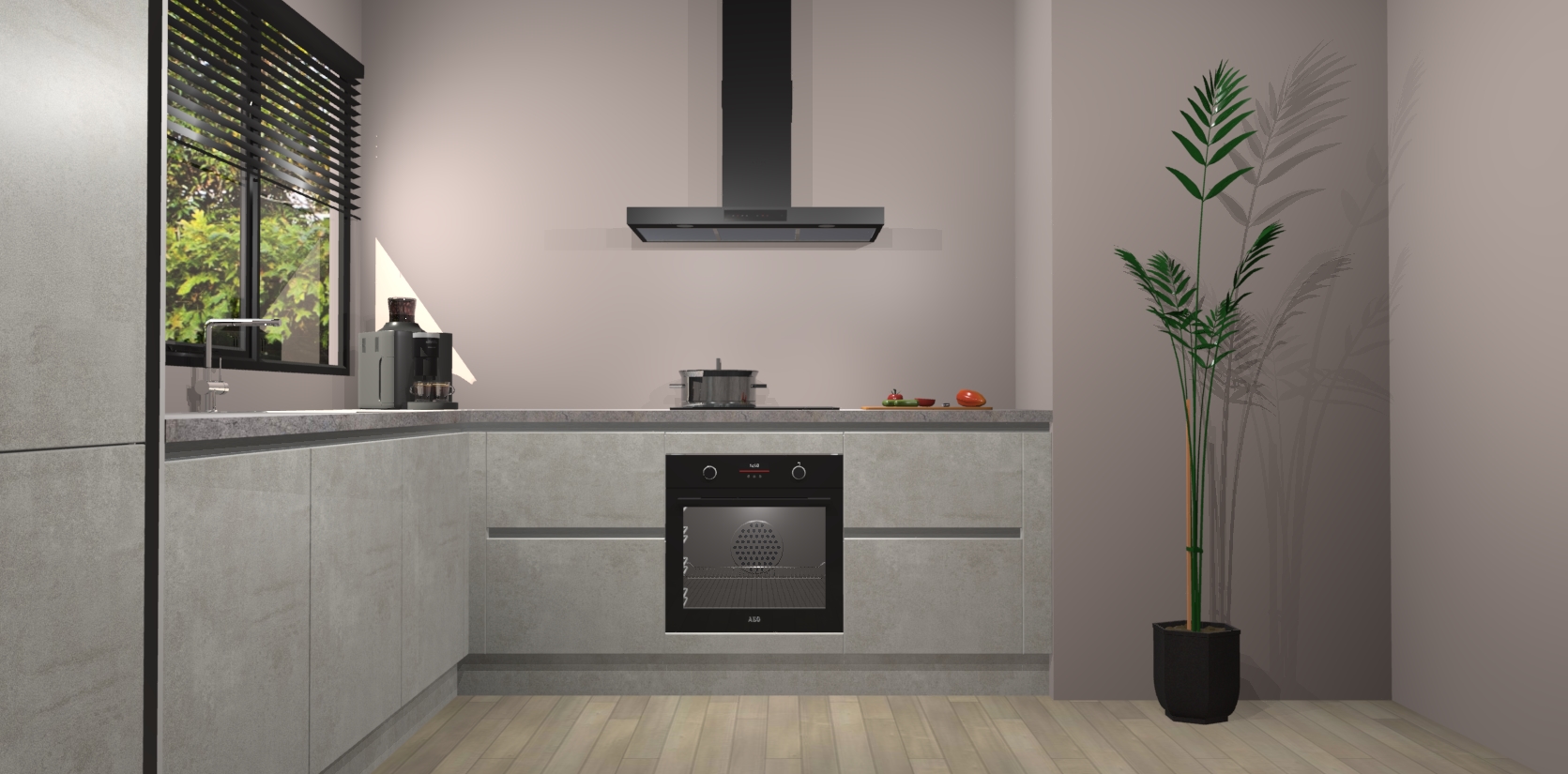 Met een modern, tijdloos design en ruime opslagruimte, zult u zich in no-time thuis voelen in uw nieuwe keuken. Uw leven wordt eenvoudiger met de soft-close deuren die voor het ultieme stille comfort zorgen - geen geluid dat u stoort terwijl u kookt. Ook is de keuken voorzien van 5 ingebouwde apparaten: een oven, inductie kookplaat, afzuigkap, vaatwasser en koelkast. Deze kunnen gemakkelijk na bestelling worden bijgewerkt naar AEG - waardoor uw luxe ervaring compleet is.