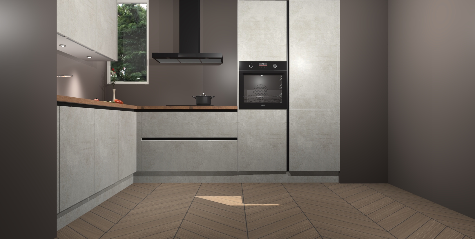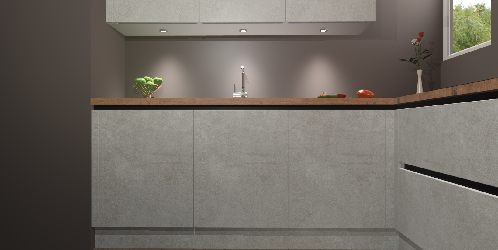 Maak u keuken elegant en verfijnd met de beton opal greeploze keuken Buenos Aires! Dit prachtige stuk heeft warme kleuren voor een strak, modern gevoel dat u de adem zal benemen. De handgrepen heeft net als de binnenkant van de kasten dezelfde beton opal afwerking, waardoor alles er nog beter uitziet.