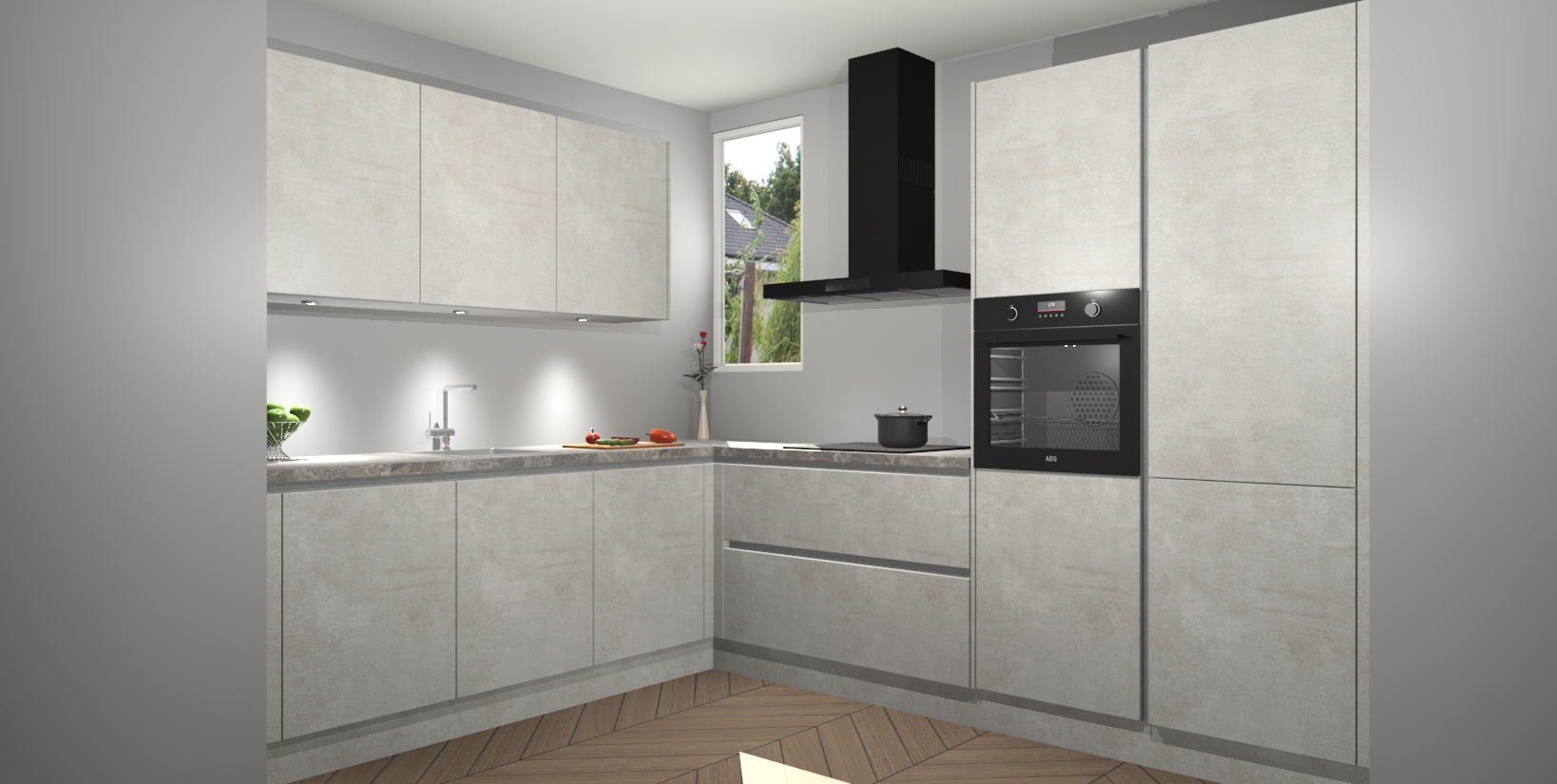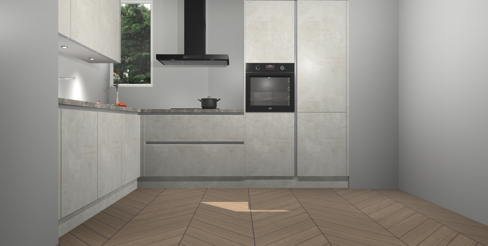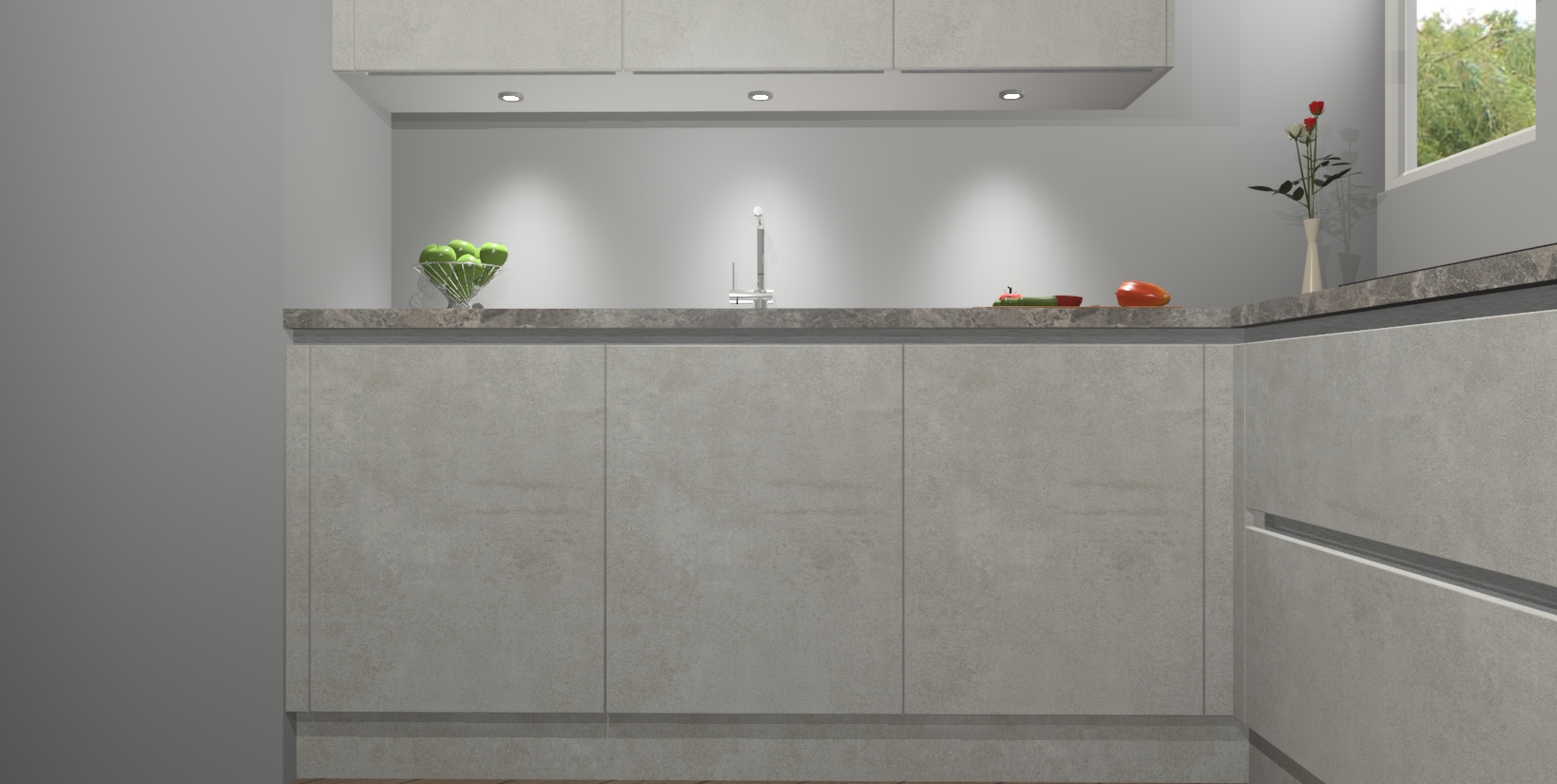 Maak u keuken elegant en verfijnd met de beton opal greeploze keuken Buenos Aires! Dit prachtige stuk heeft warme kleuren voor een strak, modern gevoel dat u de adem zal benemen. De handgrepen heeft net als de binnenkant van de kasten dezelfde beton opal afwerking, waardoor alles er nog beter uitziet.
