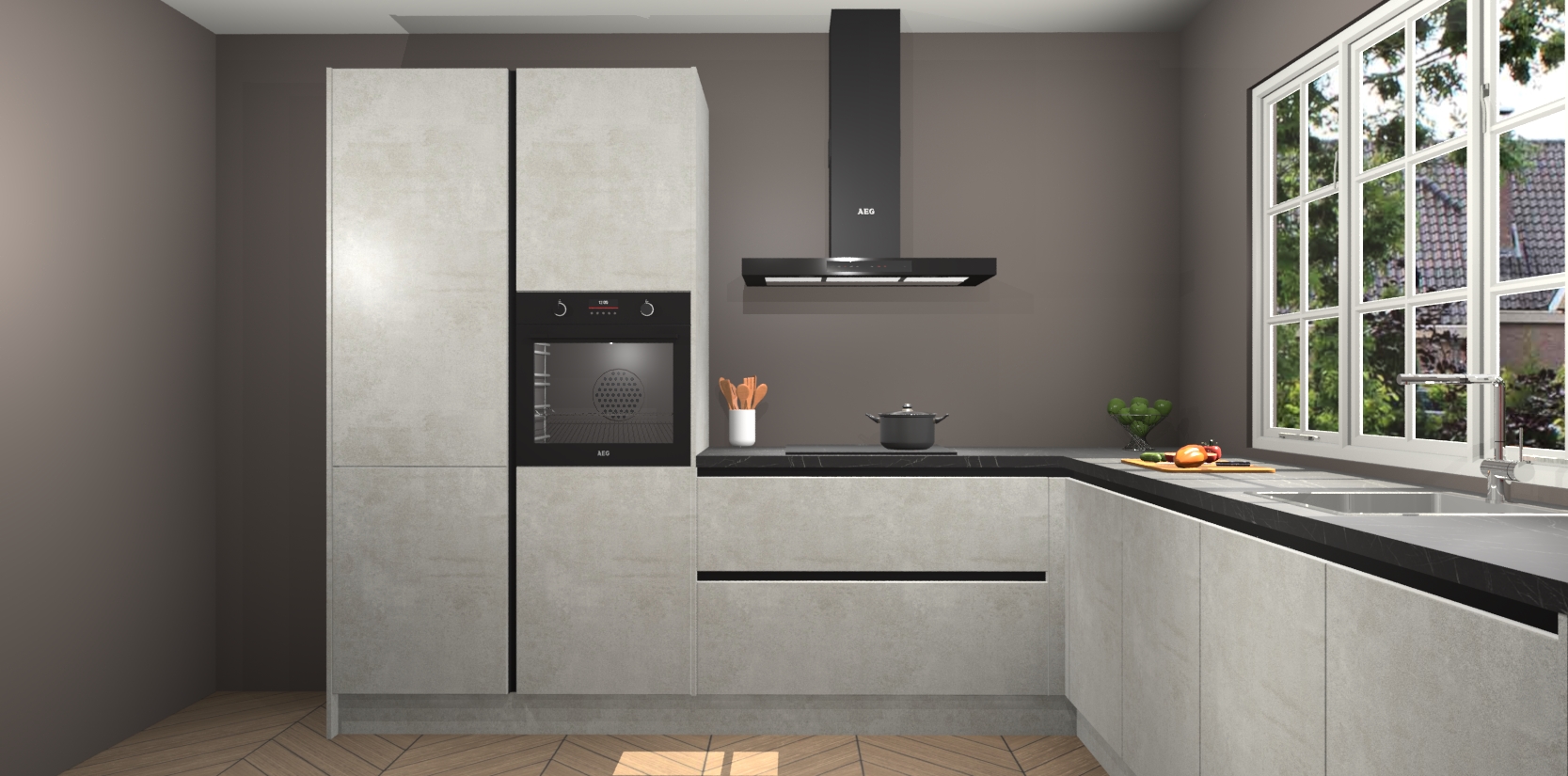 Welkom in de nieuwe wereld van een moderne keuken: de Beton Opal greeploze keuken Casablanca! Met dit innovatieve keukendesign haalt u de natuur naar binnen. Neem plaats aan uw hout-look keuken en voel u verbonden met de prachtige Beton Opal kleur. Zeer gebruiksvriendelijk, ervaring door prettige materialen en kleur die perfect aansluiten bij uw sfeerkeuze in huis.