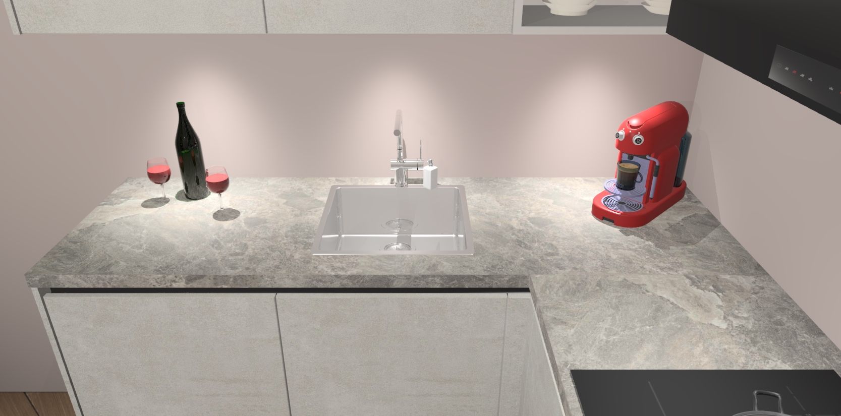 - Bij een hoekwerkblad zijn de hoeken in gevreesd en op maat gemaakt