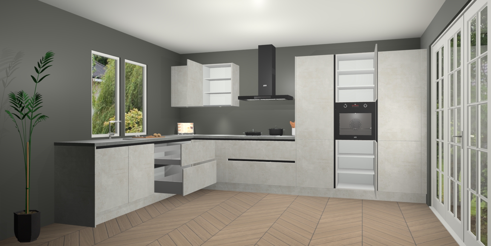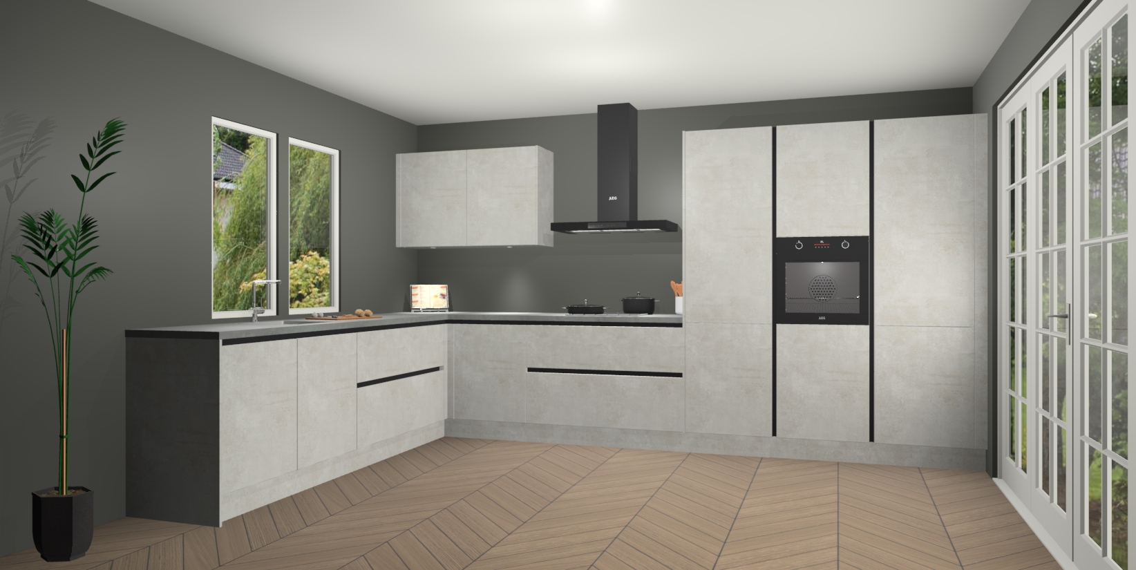 Kom dichtbij de perfecte keuken van uw dromen met de Beton Opal greeploze keuken Debrecen. Met een prachtige houtlook en eigentijds ontwerp, straalt deze keuken warmte en sfeer uit. Of u nu liefhebber bent van traditionele of moderne stijlen, er is genoeg ruimte om aan al uw behoeften te voldoen.