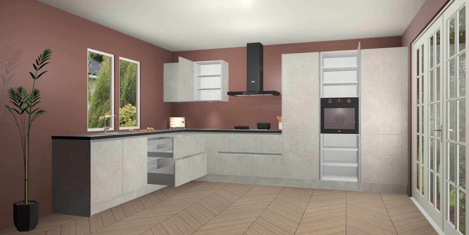 Heeft u nog apparatuur nodig? Geen probleem: de Beton Opal greeploze keuken Debrecen bevat vijf ingebouwde apparaten - een oven, inductiekookplaat, afzuigkap, vaatwasser en koelkast - die gemakkelijk kunnen worden bijgewerkt naar AEG na bestelling. En als dat nog niet genoeg is; onze kasten worden pre-geassembleerd geleverd en zijn verkrijgbaar tegen een vastgeroeste lage prijs! U hoeft nooit meer te zoeken naar goede kwaliteit en service want onze producten hebben echt Duitse kwaliteit.