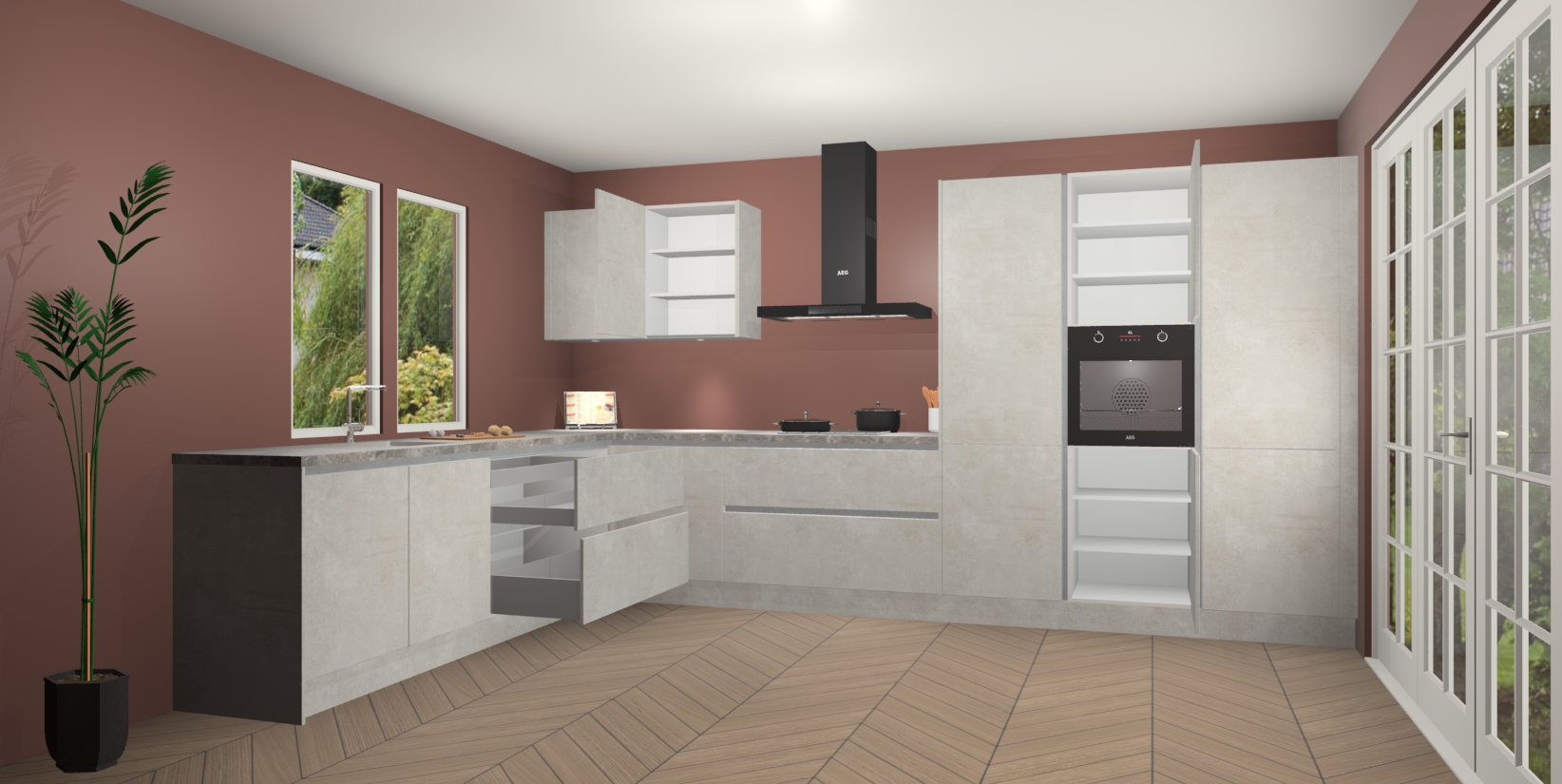 Heeft u nog apparatuur nodig? Geen probleem: de Beton Opal greeploze keuken Debrecen bevat vijf ingebouwde apparaten - een oven, inductiekookplaat, afzuigkap, vaatwasser en koelkast - die gemakkelijk kunnen worden bijgewerkt naar AEG na bestelling. En als dat nog niet genoeg is; onze kasten worden pre-geassembleerd geleverd en zijn verkrijgbaar tegen een vastgeroeste lage prijs! U hoeft nooit meer te zoeken naar goede kwaliteit en service want onze producten hebben echt Duitse kwaliteit.