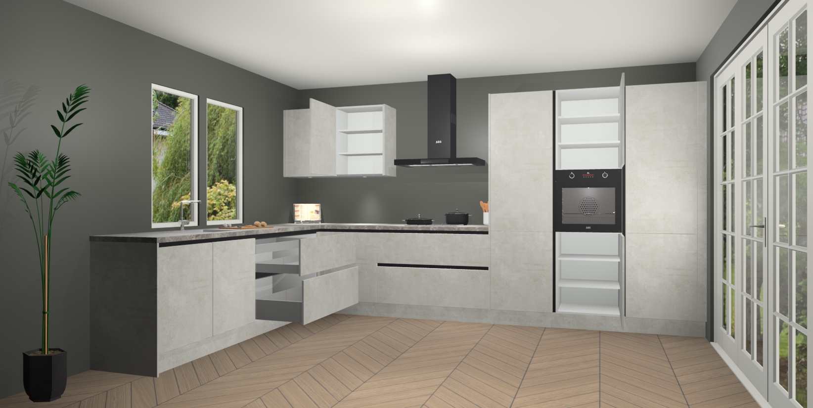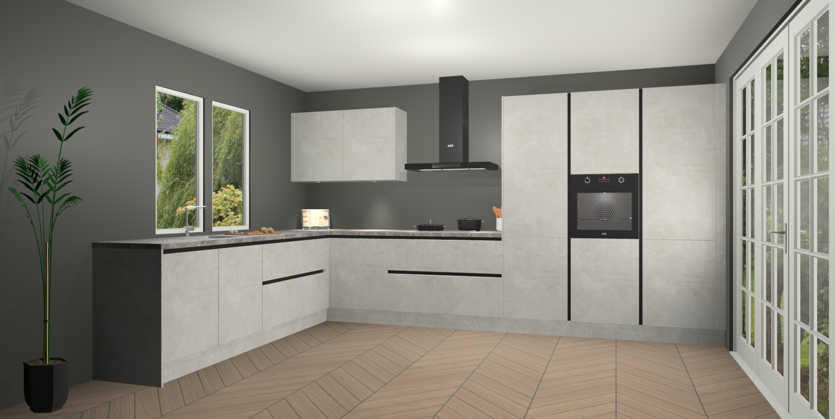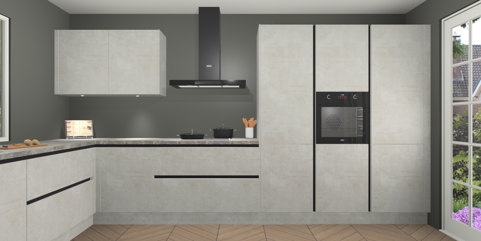 Heeft u nog apparatuur nodig? Geen probleem: de Beton Opal greeploze keuken Debrecen bevat vijf ingebouwde apparaten - een oven, inductiekookplaat, afzuigkap, vaatwasser en koelkast - die gemakkelijk kunnen worden bijgewerkt naar AEG na bestelling. En als dat nog niet genoeg is; onze kasten worden pre-geassembleerd geleverd en zijn verkrijgbaar tegen een vastgeroeste lage prijs! U hoeft nooit meer te zoeken naar goede kwaliteit en service want onze producten hebben echt Duitse kwaliteit.