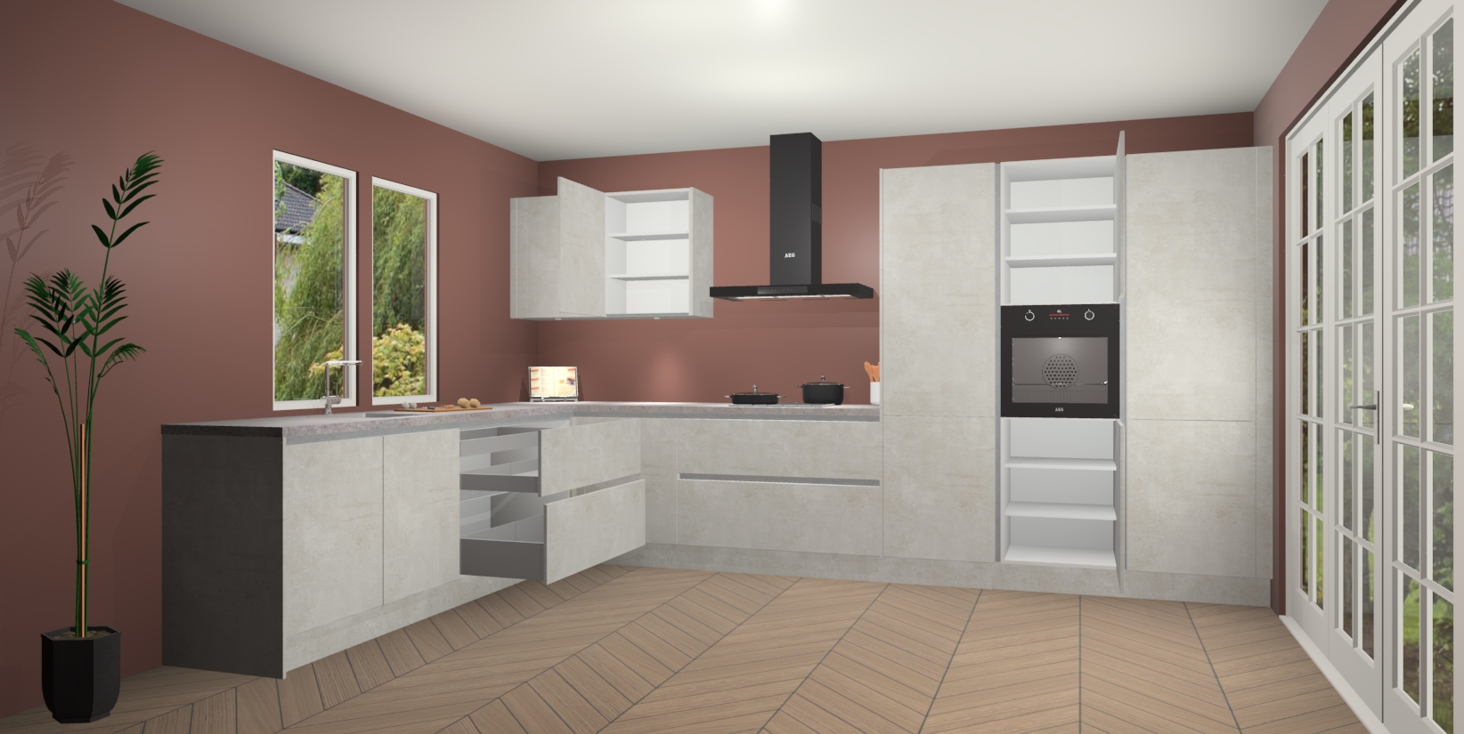 Kom dichtbij de perfecte keuken van uw dromen met de Beton Opal greeploze keuken Debrecen. Met een prachtige houtlook en eigentijds ontwerp, straalt deze keuken warmte en sfeer uit. Of u nu liefhebber bent van traditionele of moderne stijlen, er is genoeg ruimte om aan al uw behoeften te voldoen.
