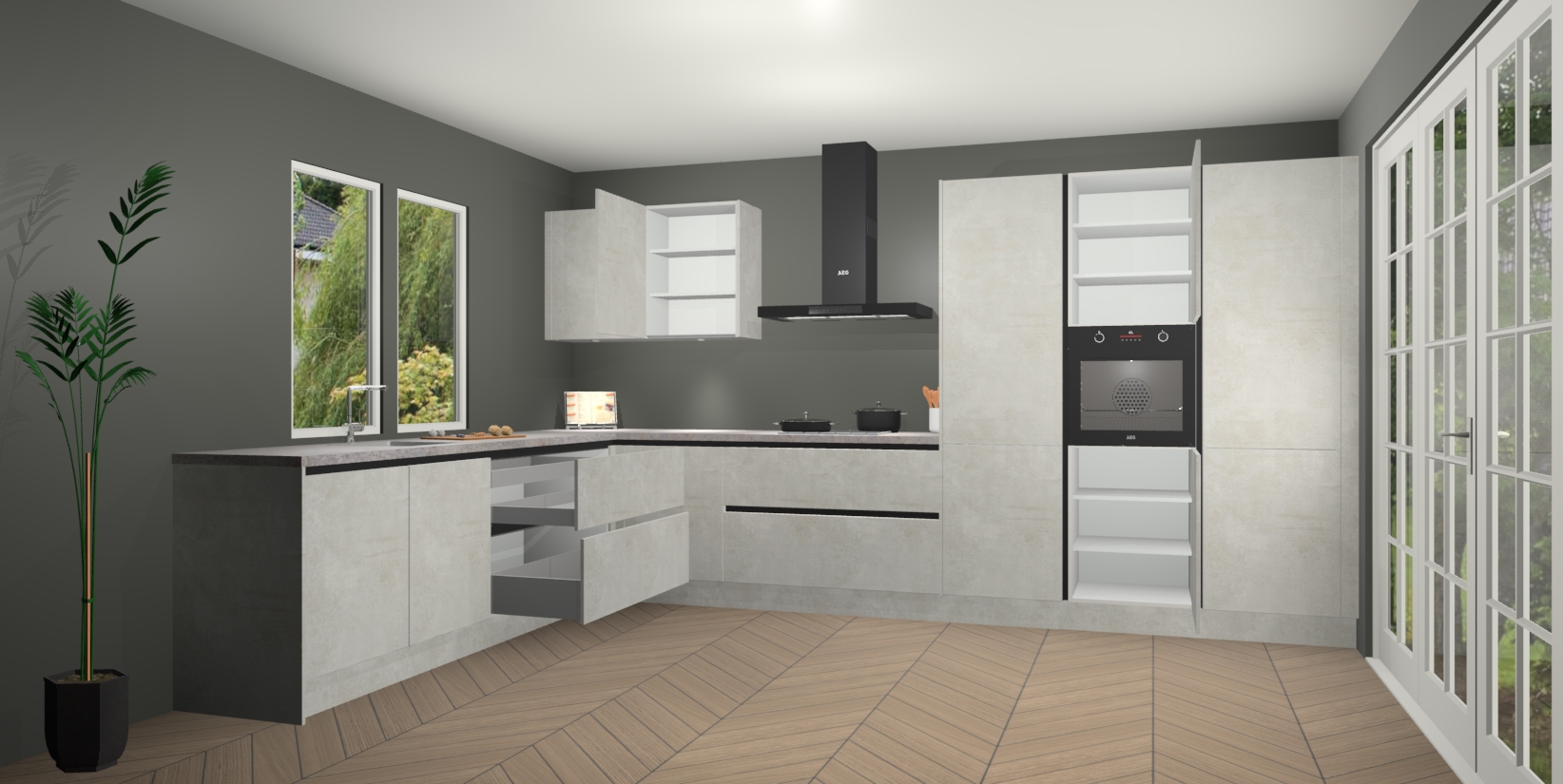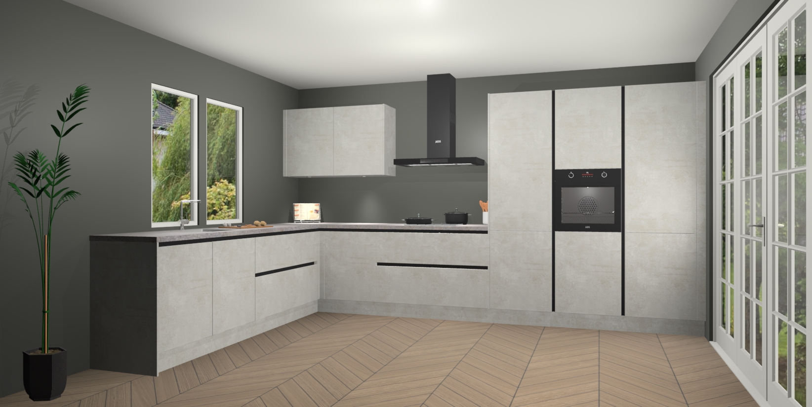 Kom dichtbij de perfecte keuken van uw dromen met de Beton Opal greeploze keuken Debrecen. Met een prachtige houtlook en eigentijds ontwerp, straalt deze keuken warmte en sfeer uit. Of u nu liefhebber bent van traditionele of moderne stijlen, er is genoeg ruimte om aan al uw behoeften te voldoen.