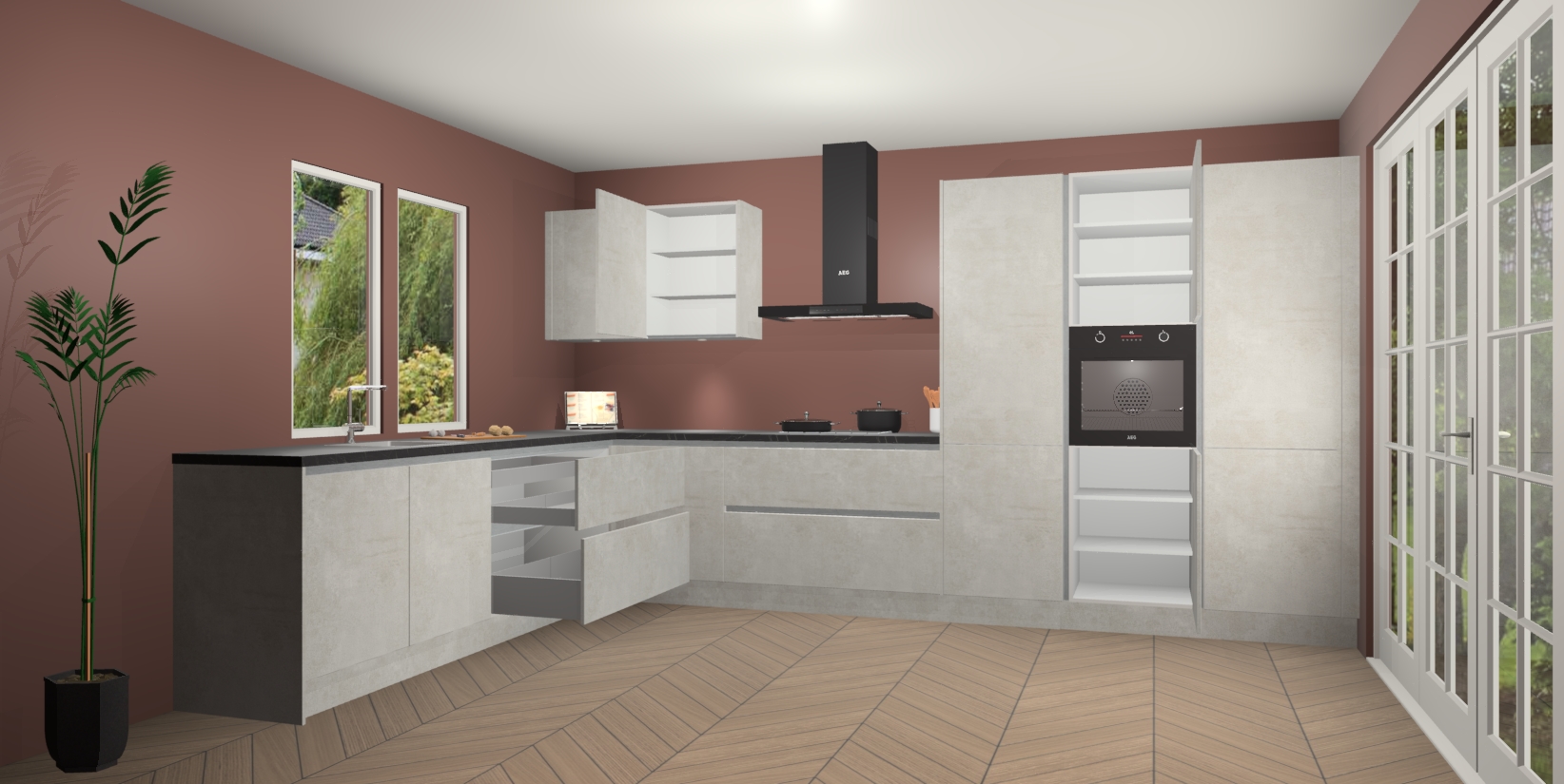 Heeft u nog apparatuur nodig? Geen probleem: de Beton Opal greeploze keuken Debrecen bevat vijf ingebouwde apparaten - een oven, inductiekookplaat, afzuigkap, vaatwasser en koelkast - die gemakkelijk kunnen worden bijgewerkt naar AEG na bestelling. En als dat nog niet genoeg is; onze kasten worden pre-geassembleerd geleverd en zijn verkrijgbaar tegen een vastgeroeste lage prijs! U hoeft nooit meer te zoeken naar goede kwaliteit en service want onze producten hebben echt Duitse kwaliteit.
