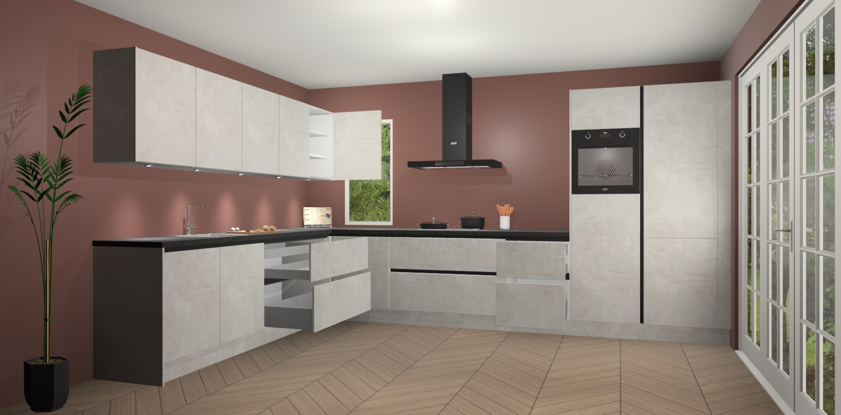 Heeft u nog apparatuur nodig? Geen probleem: de beton opal greeploze keuken Harare bevat vijf ingebouwde apparaten - een oven, inductiekookplaat, afzuigkap, vaatwasser en koelkast - die gemakkelijk kunnen worden bijgewerkt naar AEG na bestelling. En als dat nog niet genoeg is; onze kasten worden pre-geassembleerd geleverd en zijn verkrijgbaar tegen een vastgeroeste lage prijs! U hoeft nooit meer te zoeken naar goede kwaliteit en service want onze producten hebben echt Duitse kwaliteit.