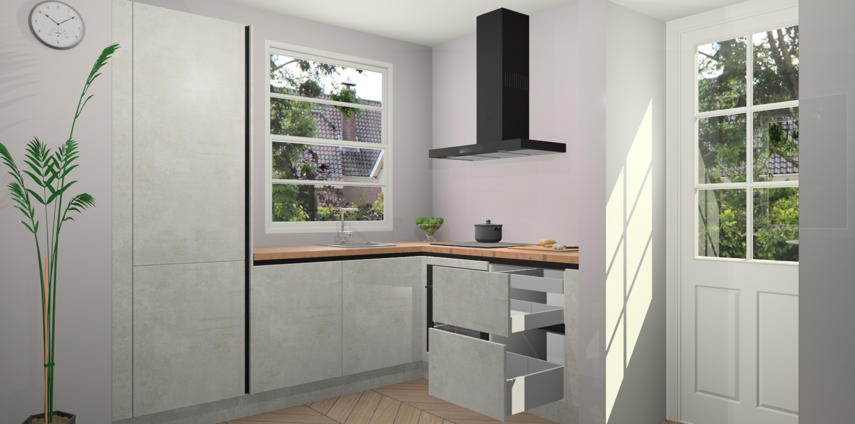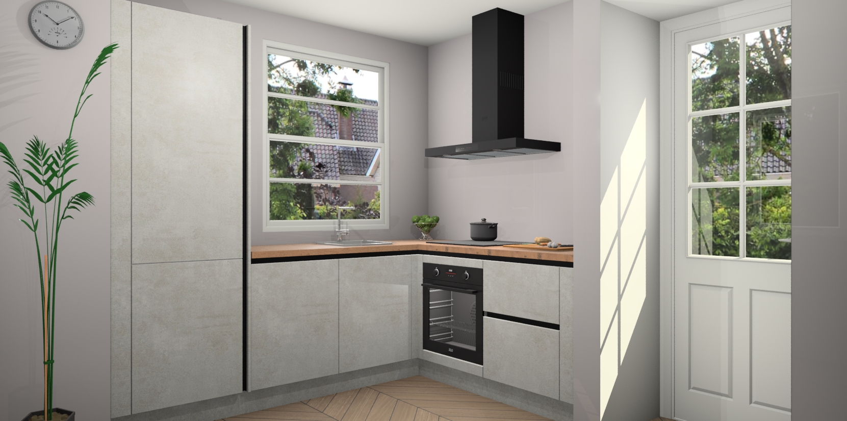 Wilt u een echte aanwinst voor uw keuken, maar bent u op zoek naar iets specialers dan de standaardkeukens? Kies dan voor de Beton Opal greeploze keuken Harbin! Dit prachtige hoekkeukenontwerp geeft u alle ruimte om optimaal te genieten van heerlijk koken. Het uitmuntende afwerkingsniveau, de fraaie houtstructuur en de sfeervolle zwarte grepen maken van de Beton Opal greeploze keuken Harbin de perfecte keuze voor zowel enthousiaste thuiskoks als design-minded interieurliefhebbers.