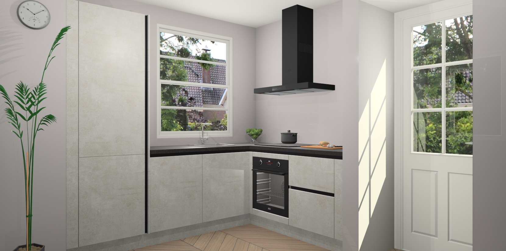 Wilt u een echte aanwinst voor uw keuken, maar bent u op zoek naar iets specialers dan de standaardkeukens? Kies dan voor de Beton Opal greeploze keuken Harbin! Dit prachtige hoekkeukenontwerp geeft u alle ruimte om optimaal te genieten van heerlijk koken. Het uitmuntende afwerkingsniveau, de fraaie houtstructuur en de sfeervolle zwarte grepen maken van de Beton Opal greeploze keuken Harbin de perfecte keuze voor zowel enthousiaste thuiskoks als design-minded interieurliefhebbers.