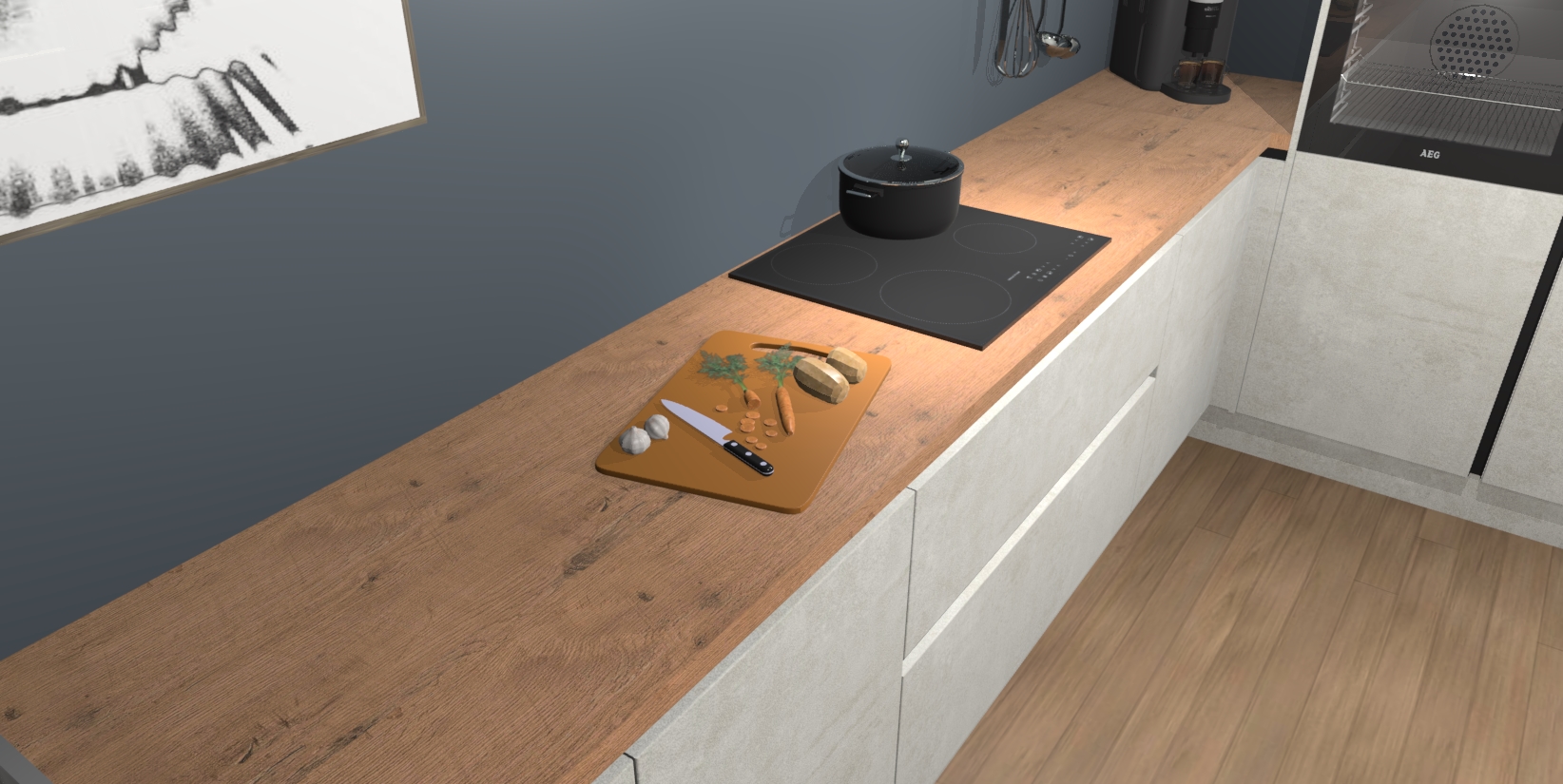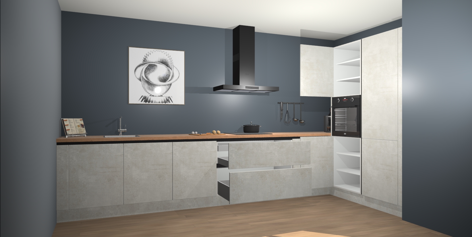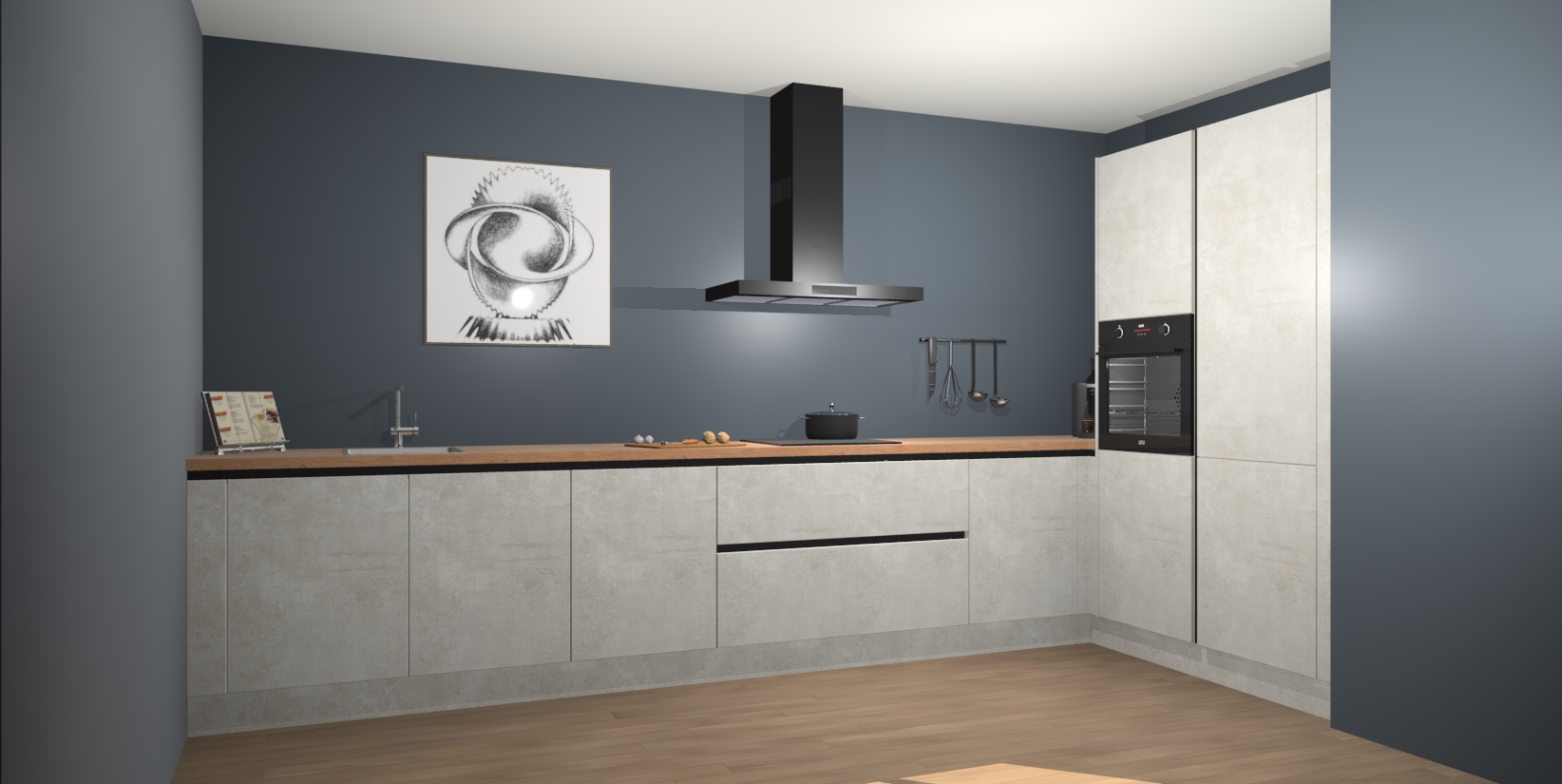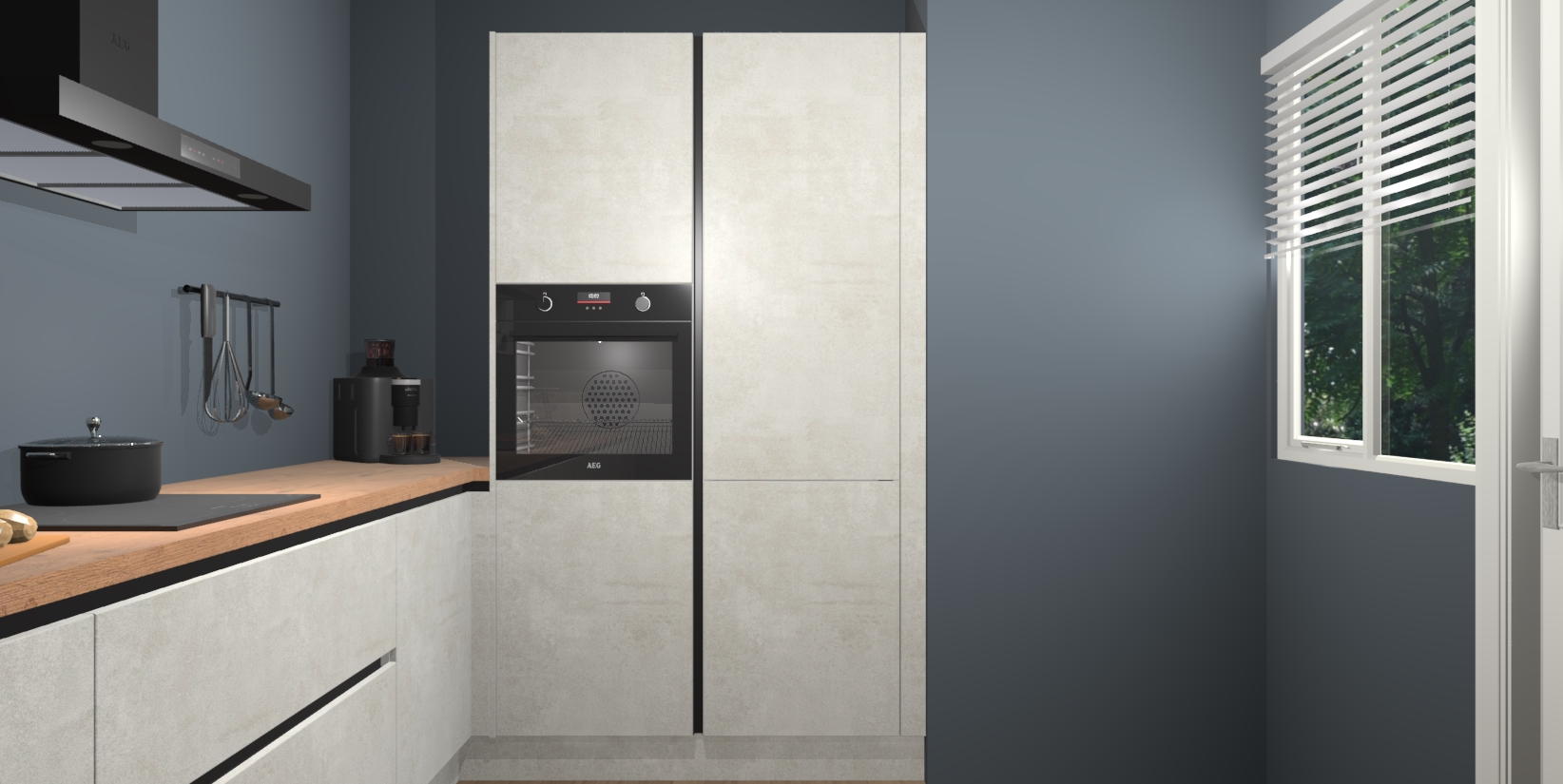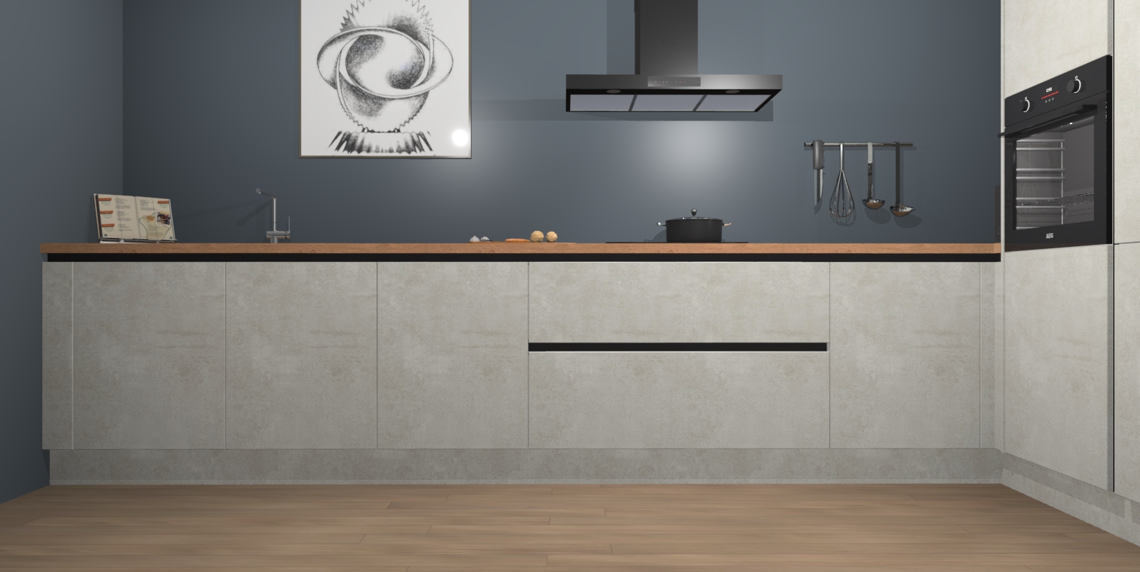 Welkom bij de Beton Opal greeploze keuken Khao Lak. Deze prachtige keuken zal de komende jaren het middelpunt van de belangstelling in uw huis zijn. Uitgerust met vijf inbouwapparaten komt u nooit kookgereedschap tekort. Bovendien geeft de warme houtlook elke ruimte een uitnodigende en tijdloze uitstraling.