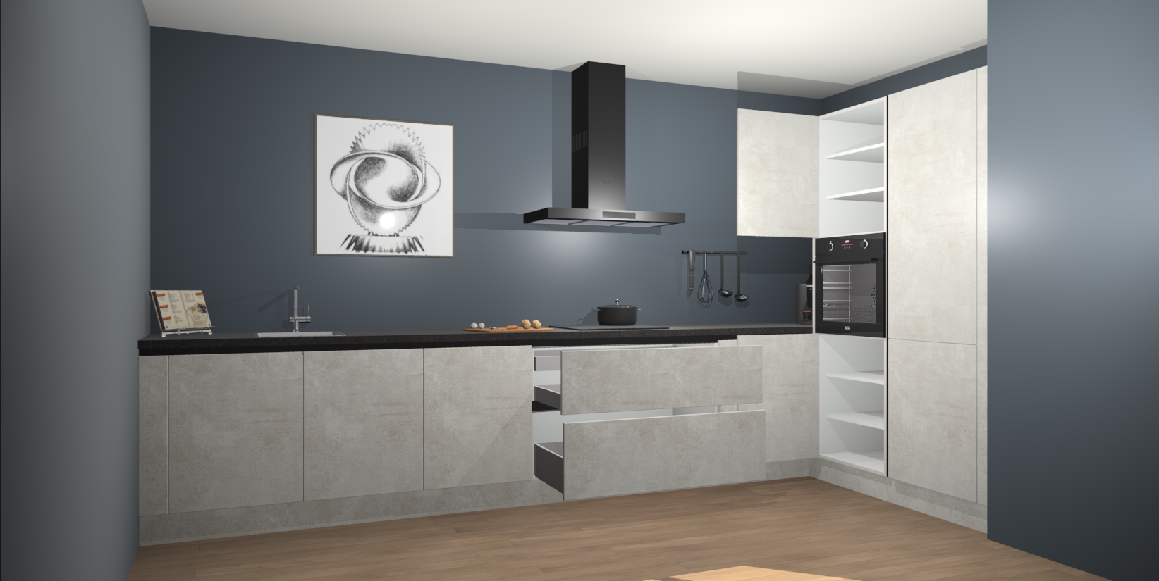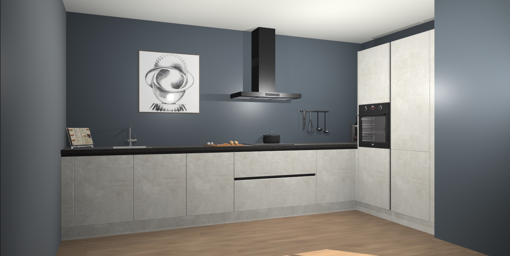Welkom bij de Beton Opal greeploze keuken Khao Lak. Deze prachtige keuken zal de komende jaren het middelpunt van de belangstelling in uw huis zijn. Uitgerust met vijf inbouwapparaten komt u nooit kookgereedschap tekort. Bovendien geeft de warme houtlook elke ruimte een uitnodigende en tijdloze uitstraling.