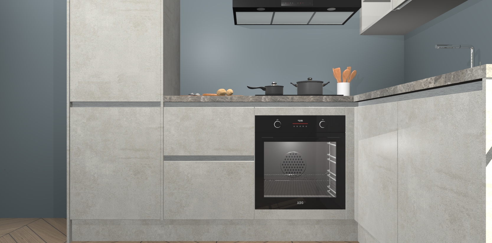 Dit model biedt u voldoende opbergruimte en vijf ingebouwde apparaten: een oven, inductiekookplaat, afzuigkap, vaatwasser en koelkast. Deze apparaten kunnen gemakkelijk worden geüpgrade naar AEG nadat u besteld heeft. De verschillende laden en kastjes bevatten softclose-deuren waardoor ze gezellig dichtvallen met een geruststellend helemaal geruisloos geluid. En dat is nog niet alles! We garanderen ook dat de prijs altijd laag blijft - dus haal nu uw Beton Opal greeploze keuken Krakau terwijl het kan.
