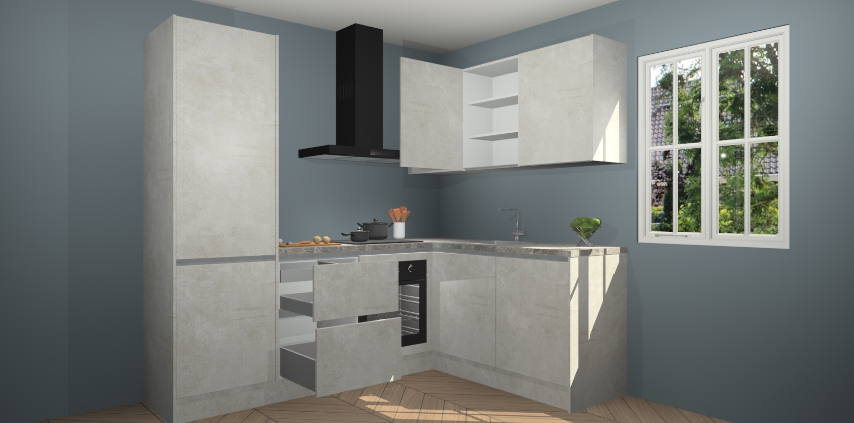 Bestellen was nog nooit zo makkelijk en we leveren met slechts 7 weken; zodra de keuken arriveert staan de kasten voor gemonteerd klaar om er alles aan te doen dat u hem gemakkelijk zelf kunt installeren! Eén ding is zeker: met de Beton Opal greeploze keuken Krakau slaagt u erin modischer, modernere keukens uit te rusten die tientallen jaren meegaan! Haal snel uw Beton Opal greeploze keuken Krakau - of u nu net begint of al 'levenservaring' hebt in de keukendroomloopbaan - want dit topmodel van onze collectie wilt u absoluut niet missen.