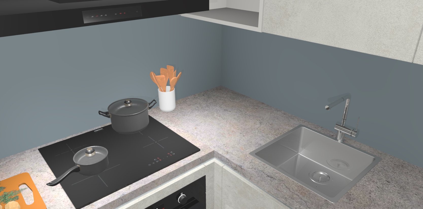 Inclusief plinten, stelpoten en werkblad