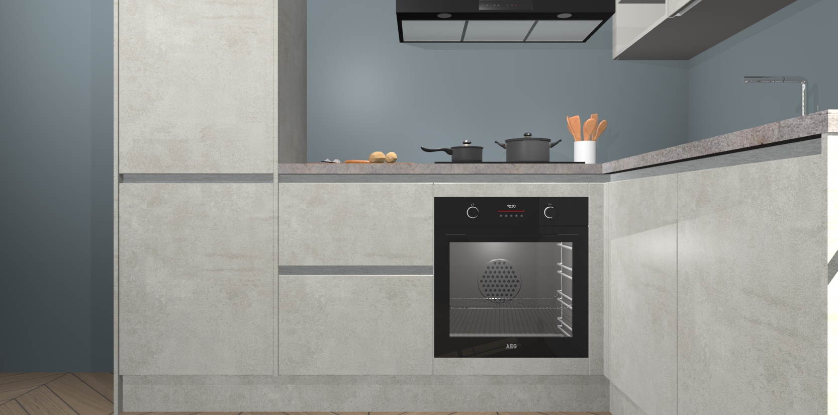 Dit model biedt u voldoende opbergruimte en vijf ingebouwde apparaten: een oven, inductiekookplaat, afzuigkap, vaatwasser en koelkast. Deze apparaten kunnen gemakkelijk worden geüpgrade naar AEG nadat u besteld heeft. De verschillende laden en kastjes bevatten softclose-deuren waardoor ze gezellig dichtvallen met een geruststellend helemaal geruisloos geluid. En dat is nog niet alles! We garanderen ook dat de prijs altijd laag blijft - dus haal nu uw Beton Opal greeploze keuken Krakau terwijl het kan.