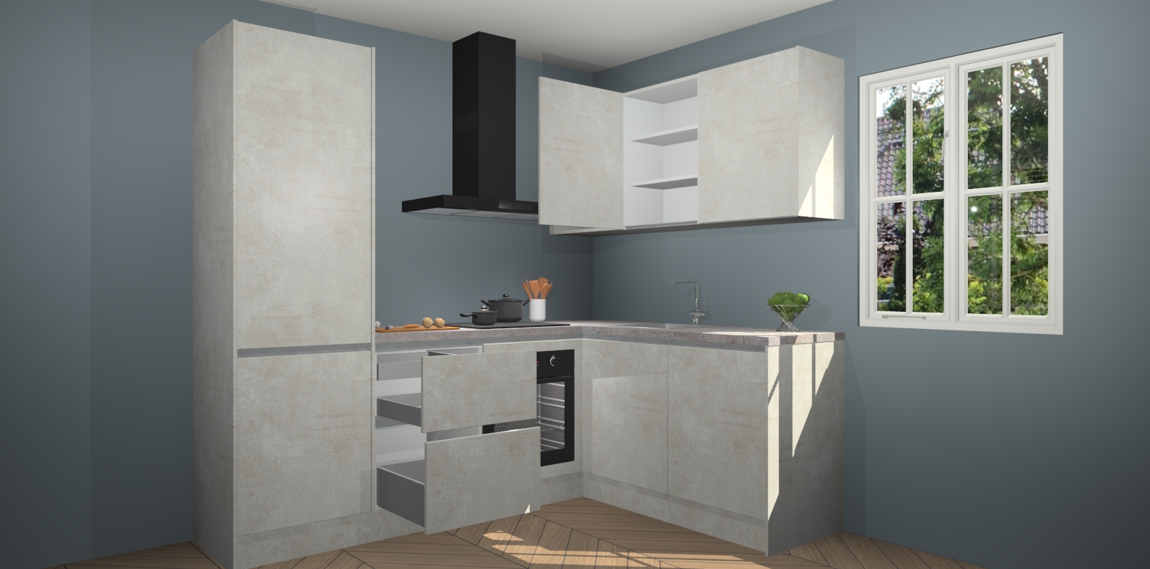 Bestellen was nog nooit zo makkelijk en we leveren met slechts 7 weken; zodra de keuken arriveert staan de kasten voor gemonteerd klaar om er alles aan te doen dat u hem gemakkelijk zelf kunt installeren! Eén ding is zeker: met de Beton Opal greeploze keuken Krakau slaagt u erin modischer, modernere keukens uit te rusten die tientallen jaren meegaan! Haal snel uw Beton Opal greeploze keuken Krakau - of u nu net begint of al 'levenservaring' hebt in de keukendroomloopbaan - want dit topmodel van onze collectie wilt u absoluut niet missen.