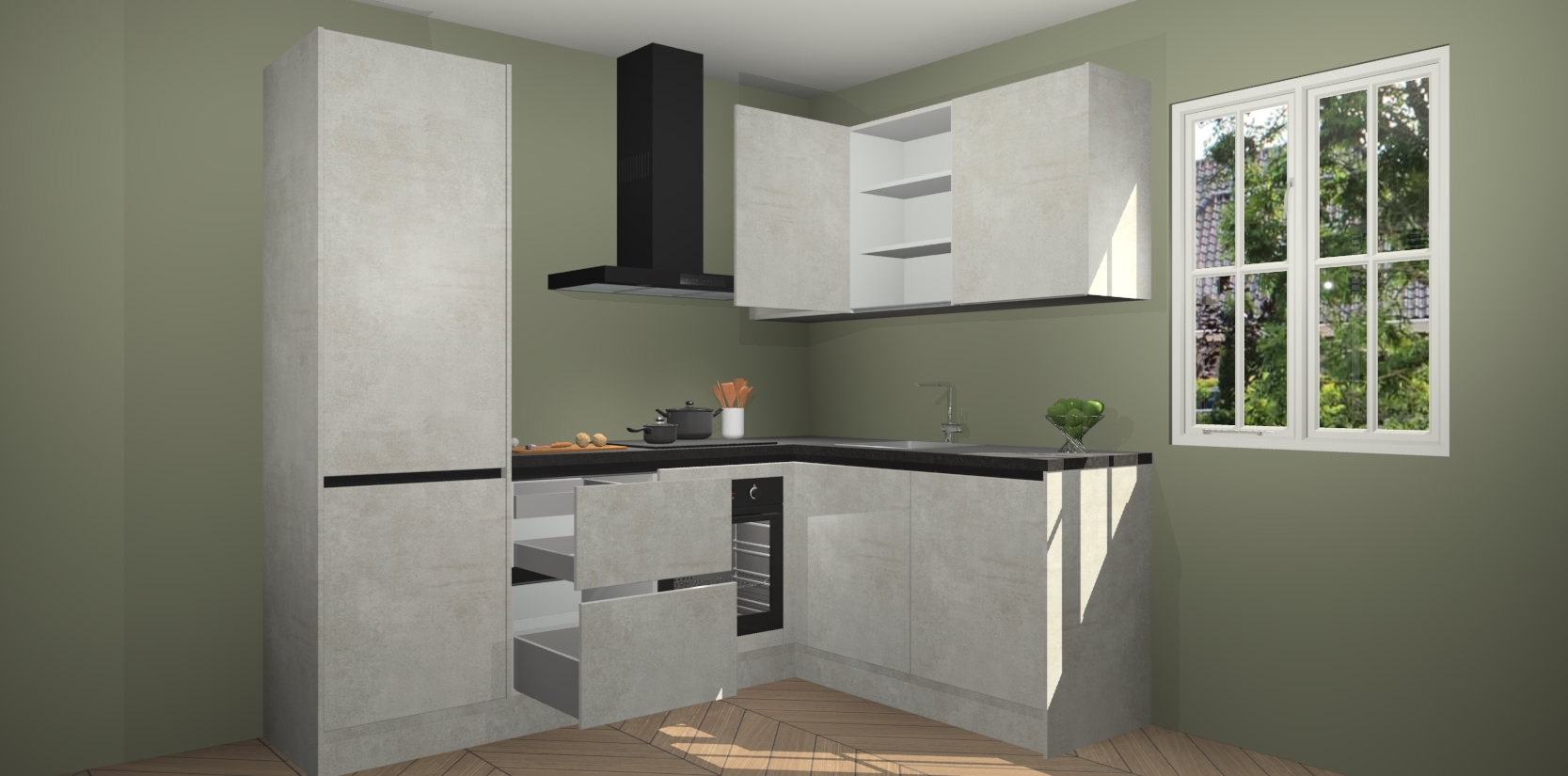 Bestellen was nog nooit zo makkelijk en we leveren met slechts 7 weken; zodra de keuken arriveert staan de kasten voor gemonteerd klaar om er alles aan te doen dat u hem gemakkelijk zelf kunt installeren! Eén ding is zeker: met de Beton Opal greeploze keuken Krakau slaagt u erin modischer, modernere keukens uit te rusten die tientallen jaren meegaan! Haal snel uw Beton Opal greeploze keuken Krakau - of u nu net begint of al 'levenservaring' hebt in de keukendroomloopbaan - want dit topmodel van onze collectie wilt u absoluut niet missen.