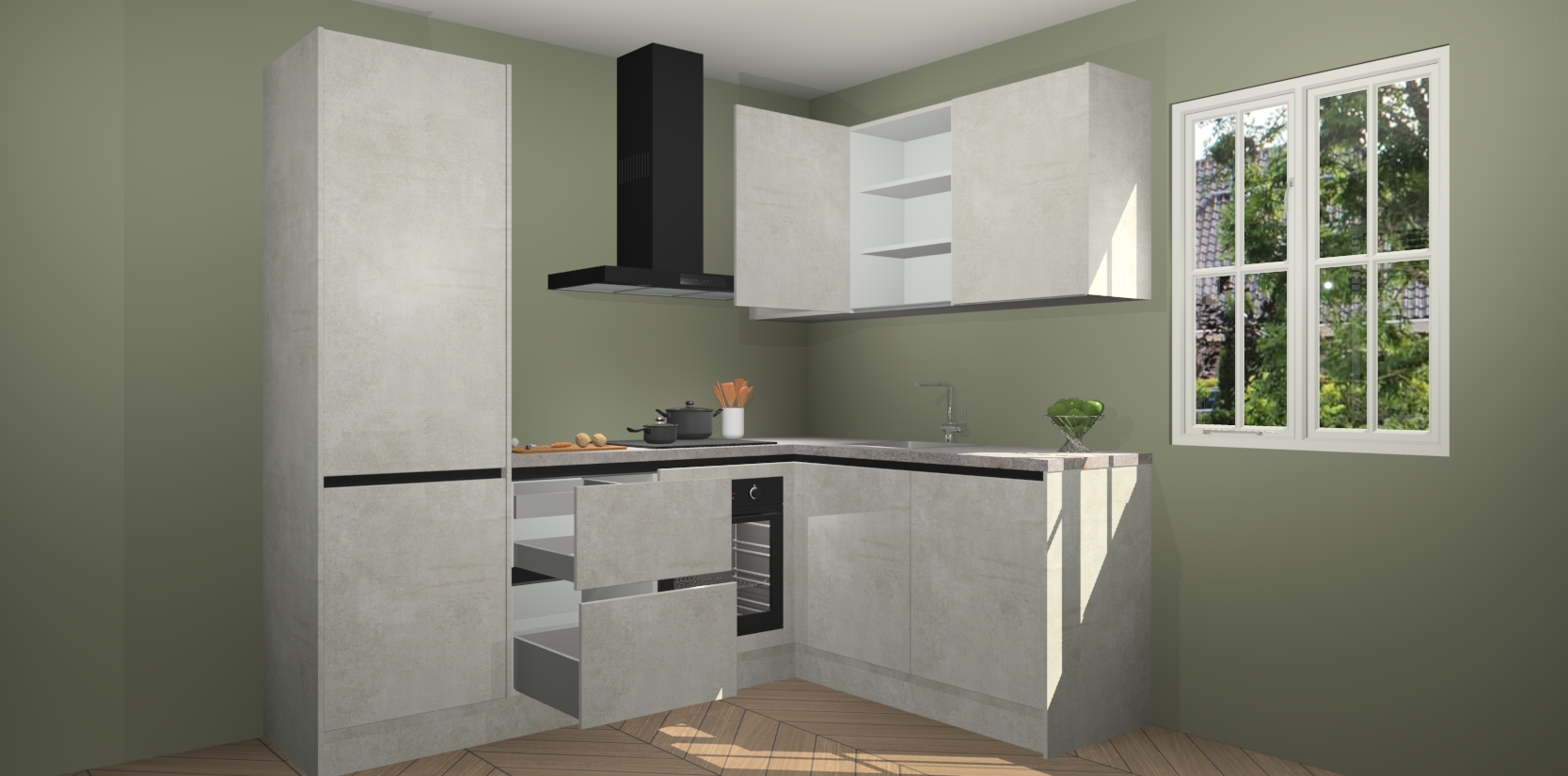 Bestellen was nog nooit zo makkelijk en we leveren met slechts 7 weken; zodra de keuken arriveert staan de kasten voor gemonteerd klaar om er alles aan te doen dat u hem gemakkelijk zelf kunt installeren! Eén ding is zeker: met de Beton Opal greeploze keuken Krakau slaagt u erin modischer, modernere keukens uit te rusten die tientallen jaren meegaan! Haal snel uw Beton Opal greeploze keuken Krakau - of u nu net begint of al 'levenservaring' hebt in de keukendroomloopbaan - want dit topmodel van onze collectie wilt u absoluut niet missen.