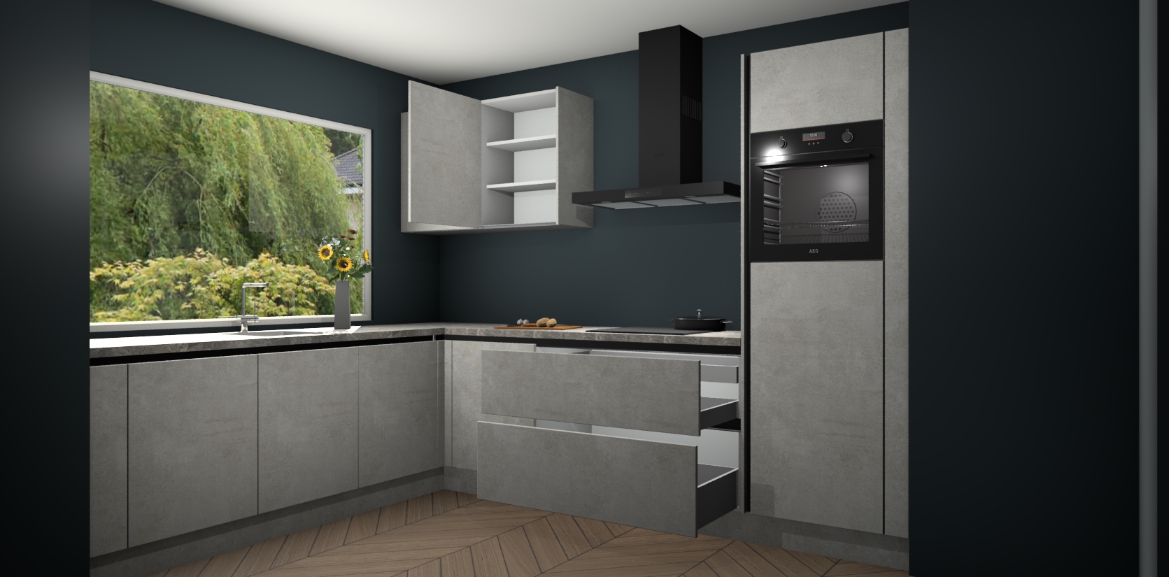 Bent u op zoek naar een onberispelijk keukenontwerp dat Duitse precisie en uitmuntende architectuur ademt? Zoek niet verder - de beton opal greeploze keuken Limonos biedt de perfecte moderne mix van stijl en functionaliteit.