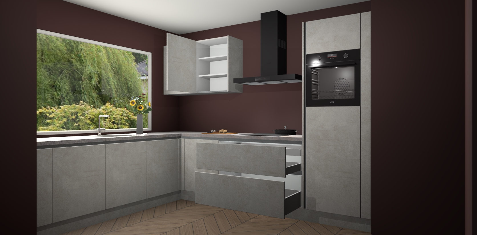 Bent u op zoek naar een onberispelijk keukenontwerp dat Duitse precisie en uitmuntende architectuur ademt? Zoek niet verder - de beton opal greeploze keuken Limonos biedt de perfecte moderne mix van stijl en functionaliteit.