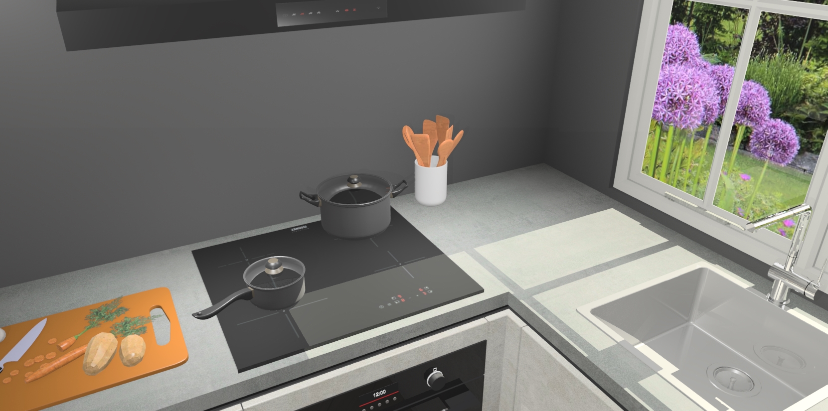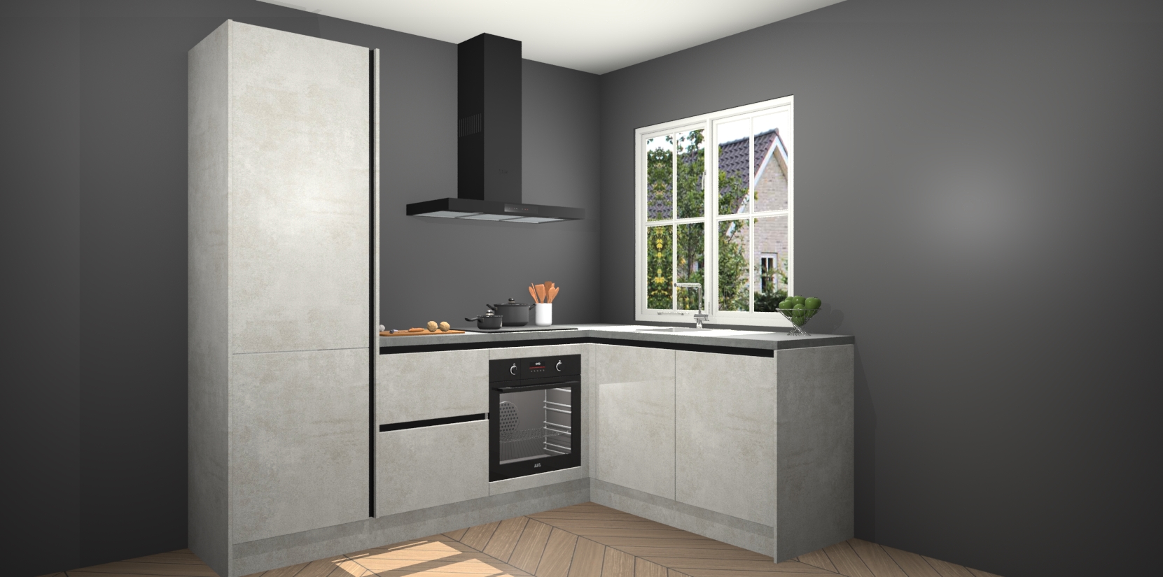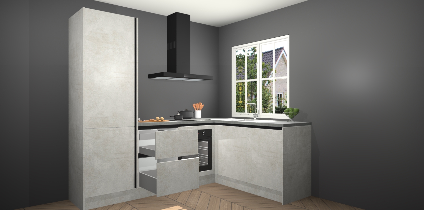 De Beton Opal greeploze keuken Linz is de perfecte keuze voor uw nieuwe moderne en tijdloze keuken. Ga voor moderne en tijdloze elegantie in uw keuken. De prachtige hoekkeuken biedt een verfrissende kijk op de manier waarop we ons vertrouwde keukenontwerp kunnen aanpassen in een nieuwe stijl. Één blik om alles te zien: zo mooi dat het bijna magisch lijkt.