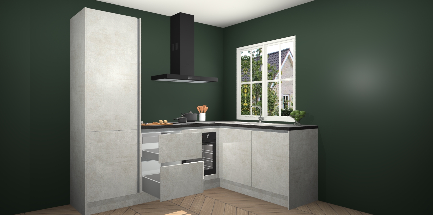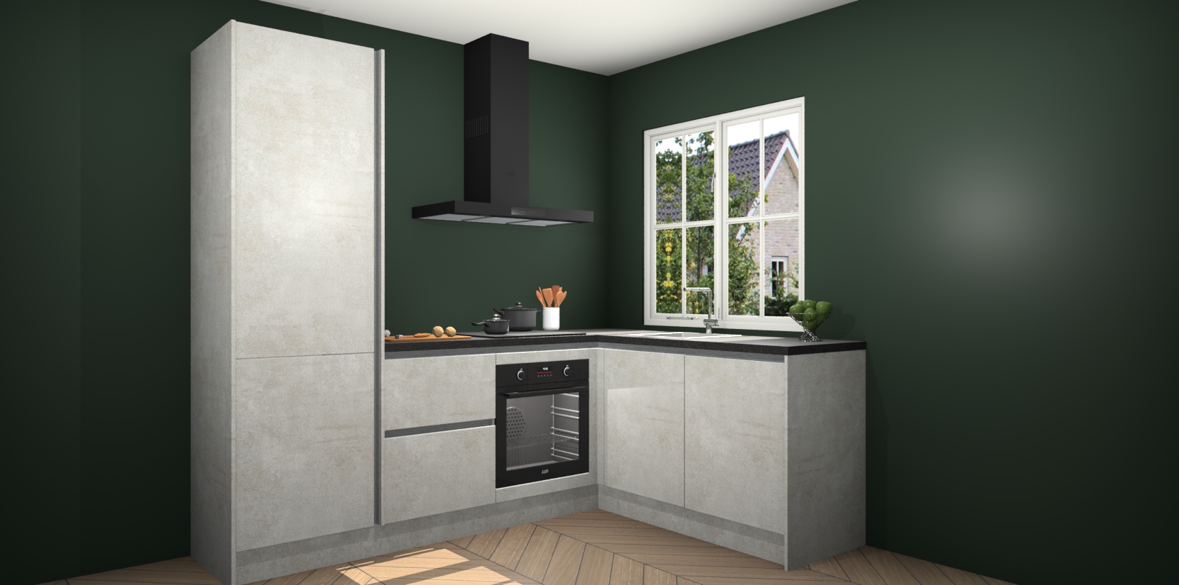 De Beton Opal greeploze keuken Linz is de perfecte keuze voor uw nieuwe moderne en tijdloze keuken. Ga voor moderne en tijdloze elegantie in uw keuken. De prachtige hoekkeuken biedt een verfrissende kijk op de manier waarop we ons vertrouwde keukenontwerp kunnen aanpassen in een nieuwe stijl. Één blik om alles te zien: zo mooi dat het bijna magisch lijkt.