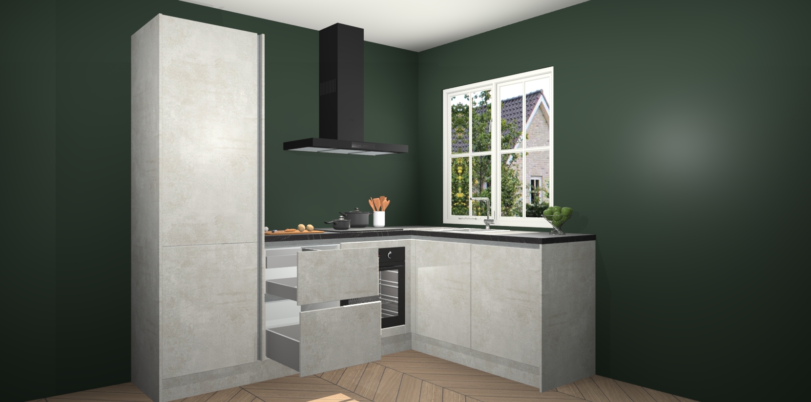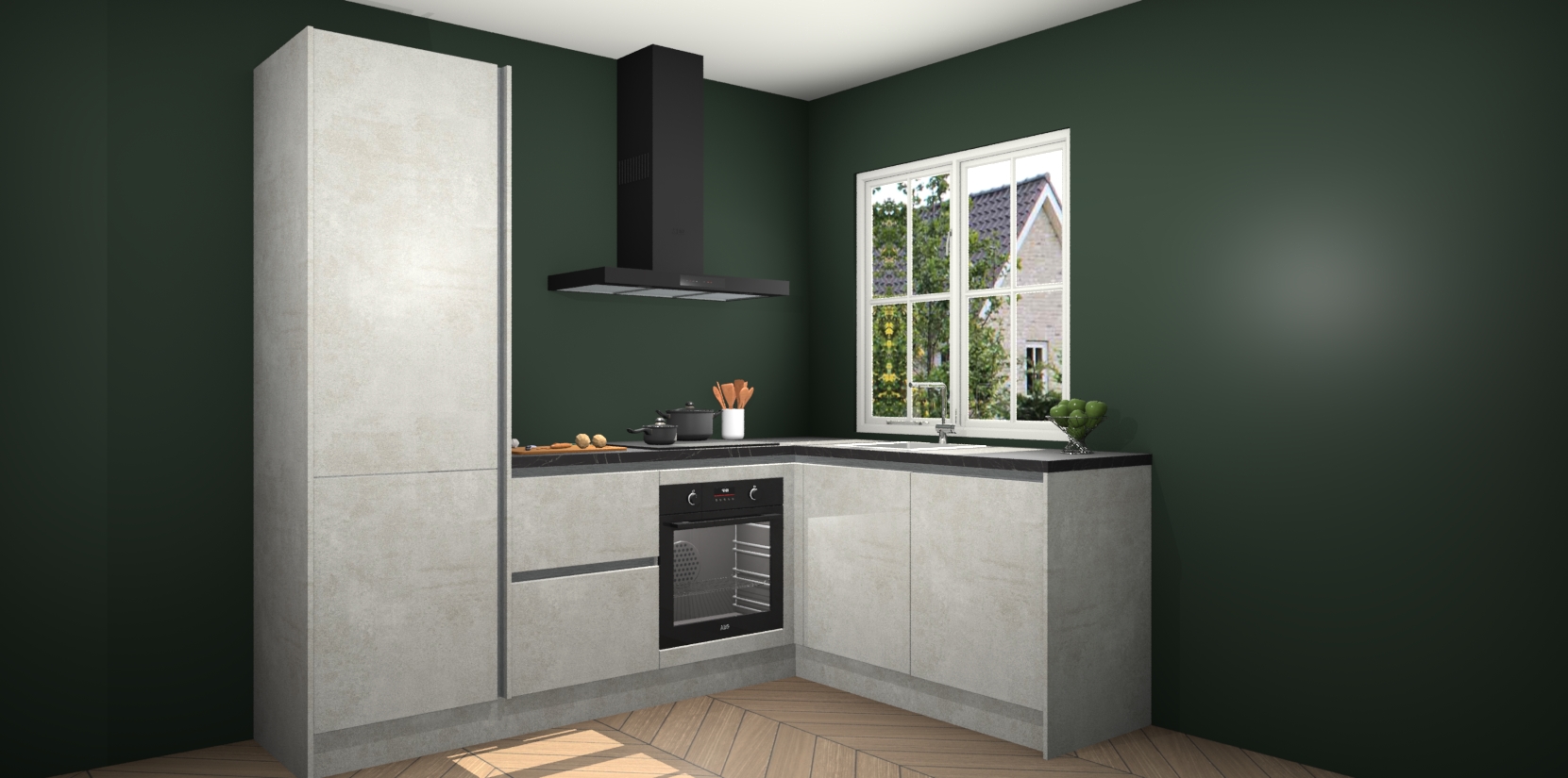 De Beton Opal greeploze keuken Linz is de perfecte keuze voor uw nieuwe moderne en tijdloze keuken. Ga voor moderne en tijdloze elegantie in uw keuken. De prachtige hoekkeuken biedt een verfrissende kijk op de manier waarop we ons vertrouwde keukenontwerp kunnen aanpassen in een nieuwe stijl.  Één blik om alles te zien: zo mooi dat het bijna magisch lijkt.