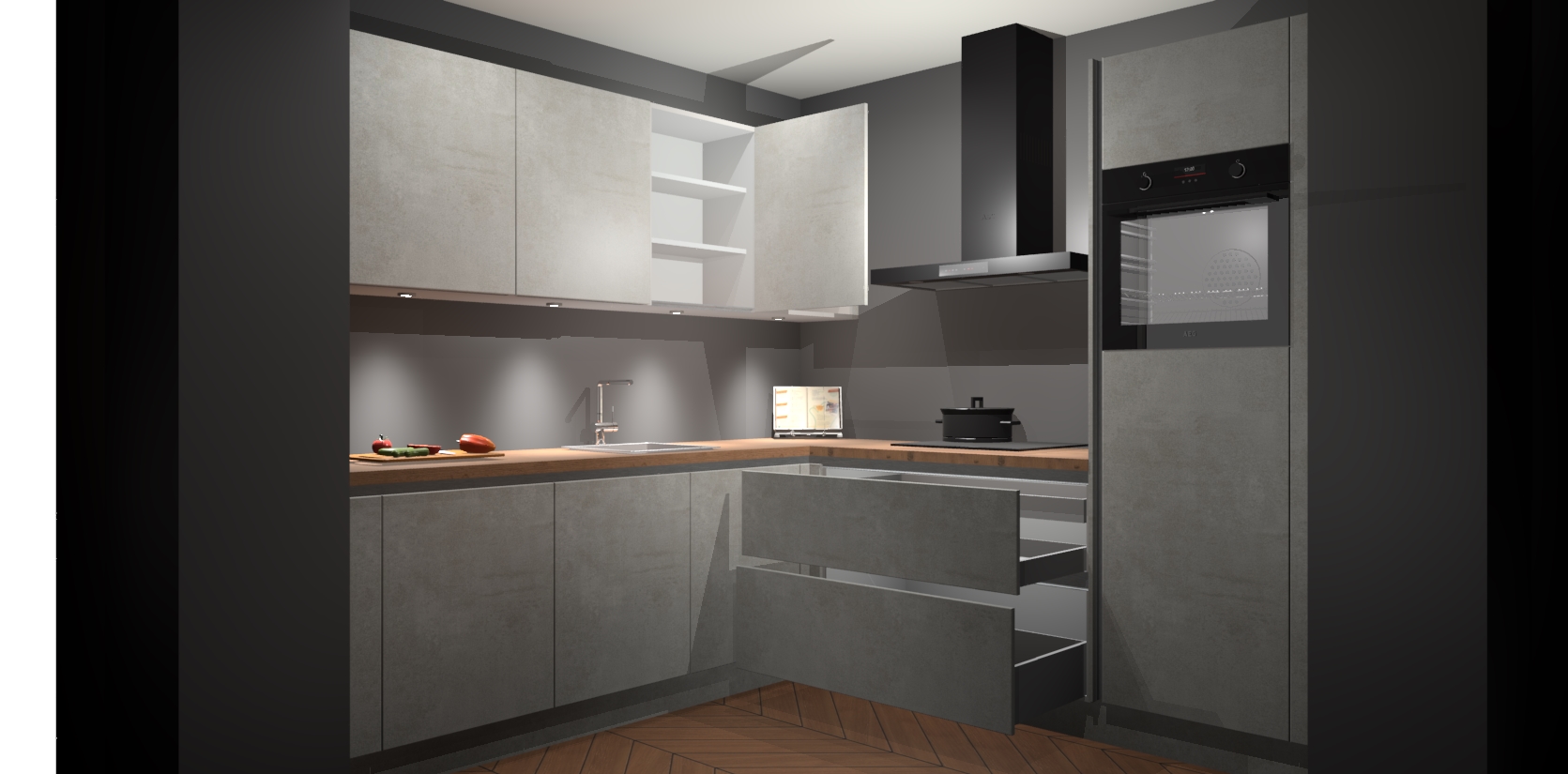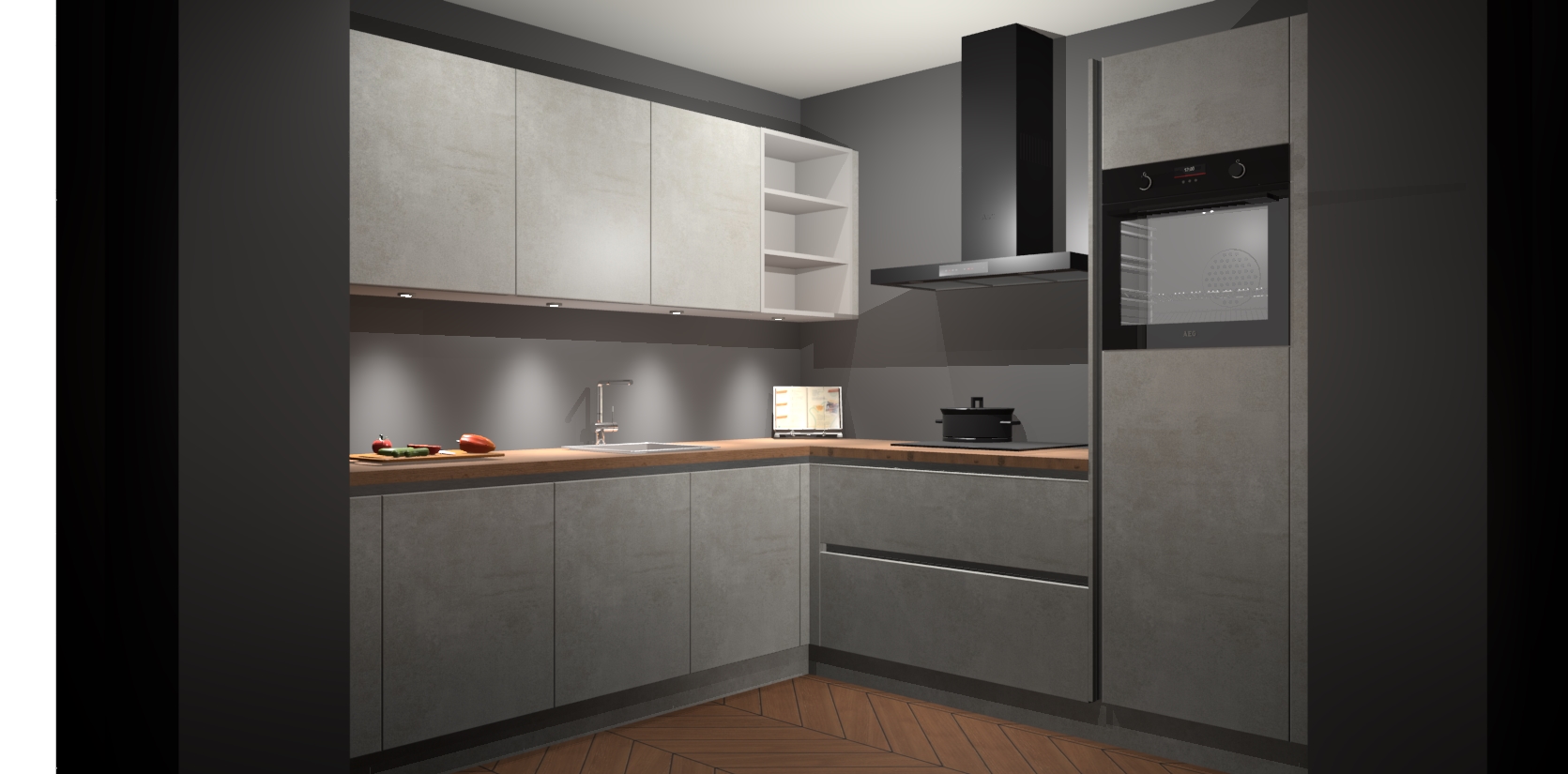 Met een modern, tijdloos design en ruime opslagruimte, zult u zich in no-time thuis voelen in uw nieuwe keuken. Uw leven wordt eenvoudiger met de soft-close deuren die voor het ultieme stille comfort zorgen - geen geluid dat u stoort terwijl u kookt. Ook is de keuken voorzien van 5 ingebouwde apparaten: een oven, inductie kookplaat, afzuigkap, vaatwasser en koelkast. Deze kunnen gemakkelijk na bestelling worden bijgewerkt naar AEG - waardoor uw luxe ervaring compleet is.