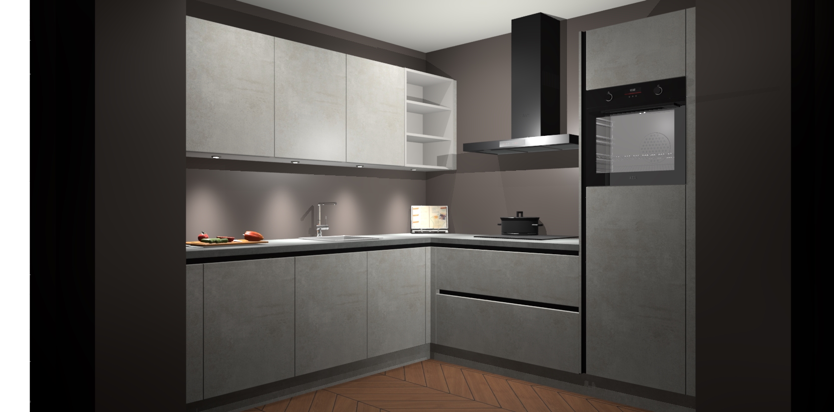 Met een modern, tijdloos design en ruime opslagruimte, zult u zich in no-time thuis voelen in uw nieuwe keuken. Uw leven wordt eenvoudiger met de soft-close deuren die voor het ultieme stille comfort zorgen - geen geluid dat u stoort terwijl u kookt. Ook is de keuken voorzien van 5 ingebouwde apparaten: een oven, inductie kookplaat, afzuigkap, vaatwasser en koelkast. Deze kunnen gemakkelijk na bestelling worden bijgewerkt naar AEG - waardoor uw luxe ervaring compleet is.
