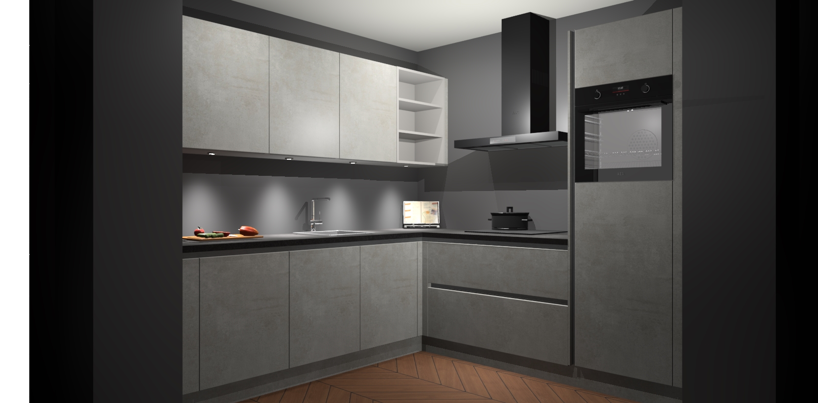 Met een modern, tijdloos design en ruime opslagruimte, zult u zich in no-time thuis voelen in uw nieuwe keuken. Uw leven wordt eenvoudiger met de soft-close deuren die voor het ultieme stille comfort zorgen - geen geluid dat u stoort terwijl u kookt. Ook is de keuken voorzien van 5 ingebouwde apparaten: een oven, inductie kookplaat, afzuigkap, vaatwasser en koelkast. Deze kunnen gemakkelijk na bestelling worden bijgewerkt naar AEG - waardoor uw luxe ervaring compleet is.
