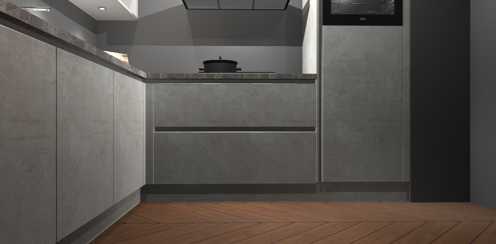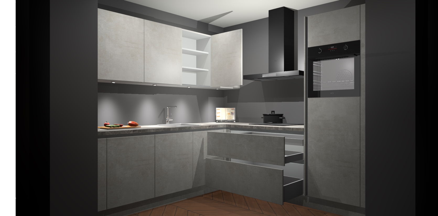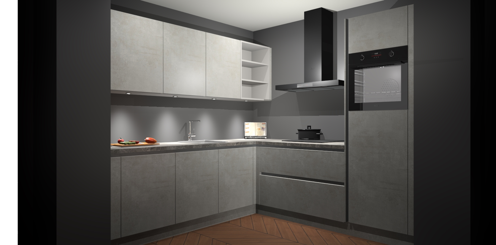 Met een modern, tijdloos design en ruime opslagruimte, zult u zich in no-time thuis voelen in uw nieuwe keuken. Uw leven wordt eenvoudiger met de soft-close deuren die voor het ultieme stille comfort zorgen - geen geluid dat u stoort terwijl u kookt. Ook is de keuken voorzien van 5 ingebouwde apparaten: een oven, inductie kookplaat, afzuigkap, vaatwasser en koelkast. Deze kunnen gemakkelijk na bestelling worden bijgewerkt naar AEG - waardoor uw luxe ervaring compleet is.