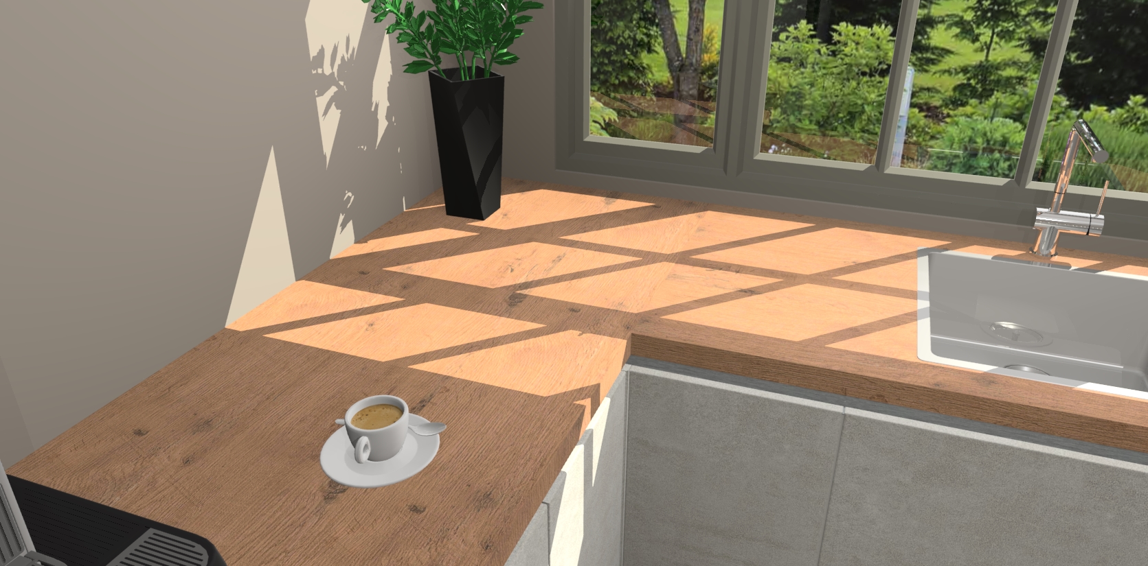- Bij een hoekwerkblad zijn de hoeken in gevreesd en op maat gemaakt