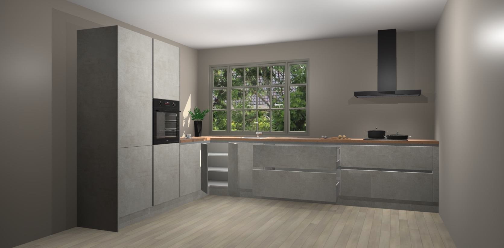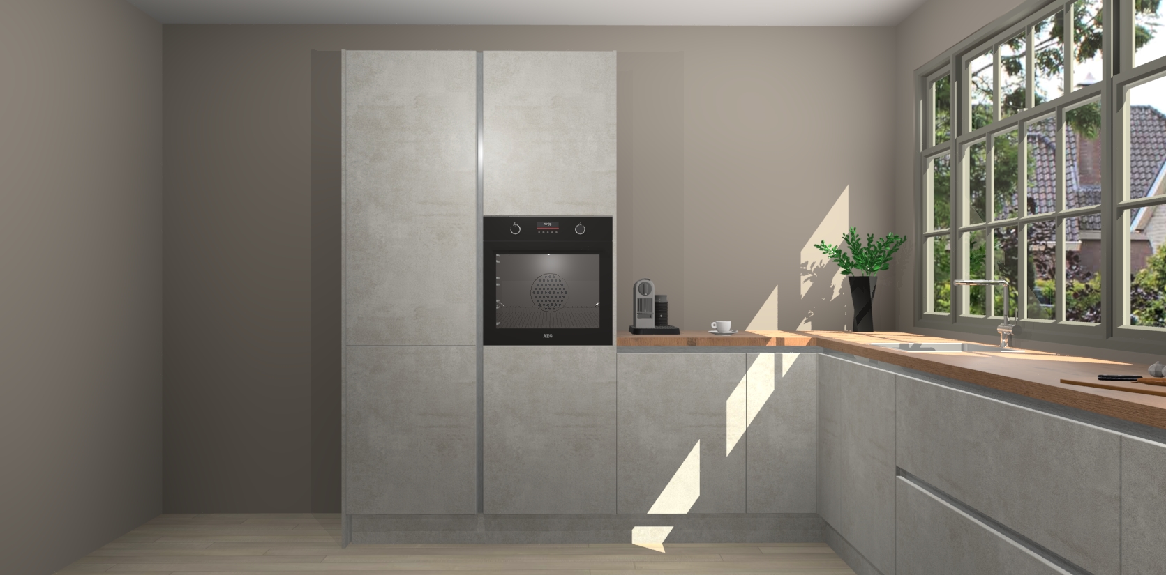 Kom dichtbij de perfecte keuken van uw dromen met de Beton Opal greeploze keuken Malaga. Met een prachtige houtlook en eigentijds ontwerp, straalt deze keuken warmte en sfeer uit. Of u nu liefhebber bent van traditionele of moderne stijlen, er is genoeg ruimte om aan al uw behoeften te voldoen.