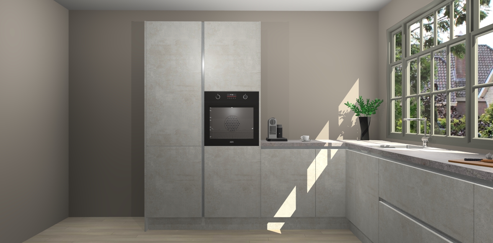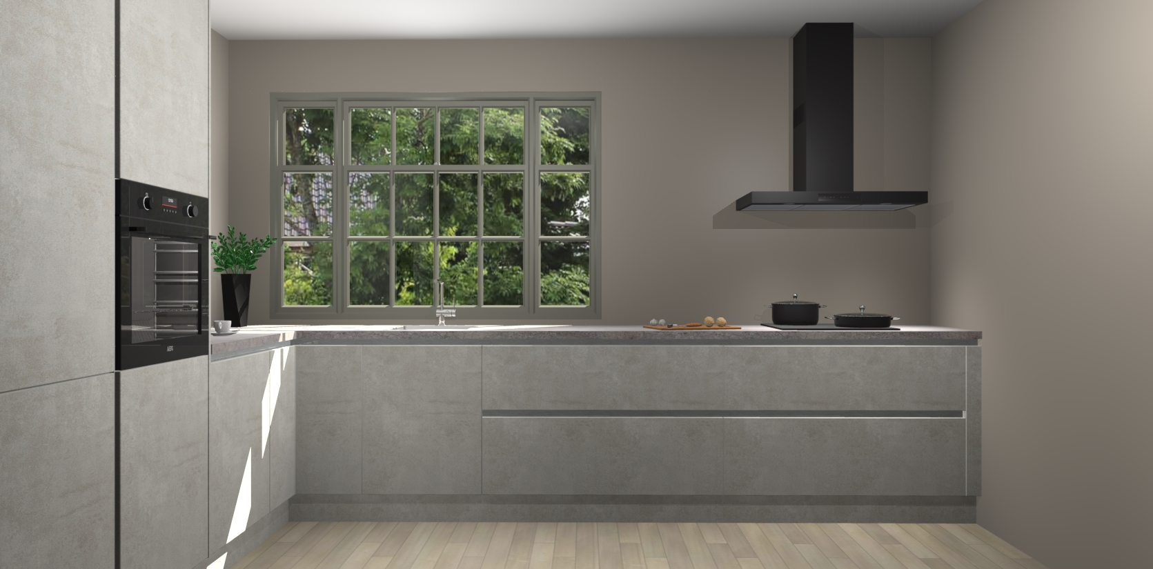 Heeft u nog apparatuur nodig? Geen probleem: de Beton Opal greeploze keuken Malaga bevat vijf ingebouwde apparaten - een oven, inductiekookplaat, afzuigkap, vaatwasser en koelkast - die gemakkelijk kunnen worden bijgewerkt naar AEG na bestelling. En als dat nog niet genoeg is; onze kasten worden pre-geassembleerd geleverd en zijn verkrijgbaar tegen een vastgeroeste lage prijs! U hoeft nooit meer te zoeken naar goede kwaliteit en service want onze producten hebben echt Duitse kwaliteit.