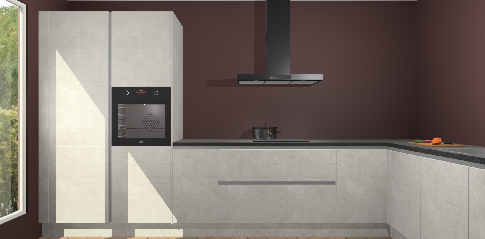 Met een modern, tijdloos design en ruime opslagruimte, zult u zich in no-time thuis voelen in uw nieuwe keuken. Uw leven wordt eenvoudiger met de soft-close deuren die voor het ultieme stille comfort zorgen - geen geluid dat u stoort terwijl u kookt. Ook is de keuken voorzien van 5 ingebouwde apparaten: een oven, inductie kookplaat, afzuigkap, vaatwasser en koelkast. Deze kunnen gemakkelijk na bestelling worden bijgewerkt naar AEG - waardoor uw luxe ervaring compleet is.