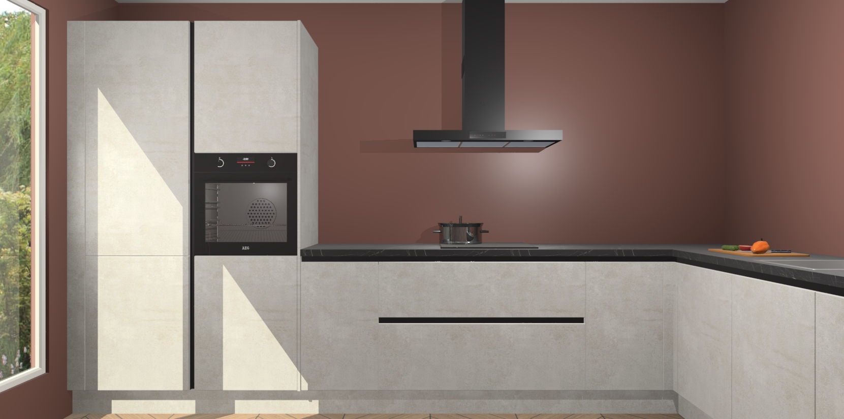 Met een modern, tijdloos design en ruime opslagruimte, zult u zich in no-time thuis voelen in uw nieuwe keuken. Uw leven wordt eenvoudiger met de soft-close deuren die voor het ultieme stille comfort zorgen - geen geluid dat u stoort terwijl u kookt. Ook is de keuken voorzien van 5 ingebouwde apparaten: een oven, inductie kookplaat, afzuigkap, vaatwasser en koelkast. Deze kunnen gemakkelijk na bestelling worden bijgewerkt naar AEG - waardoor uw luxe ervaring compleet is.