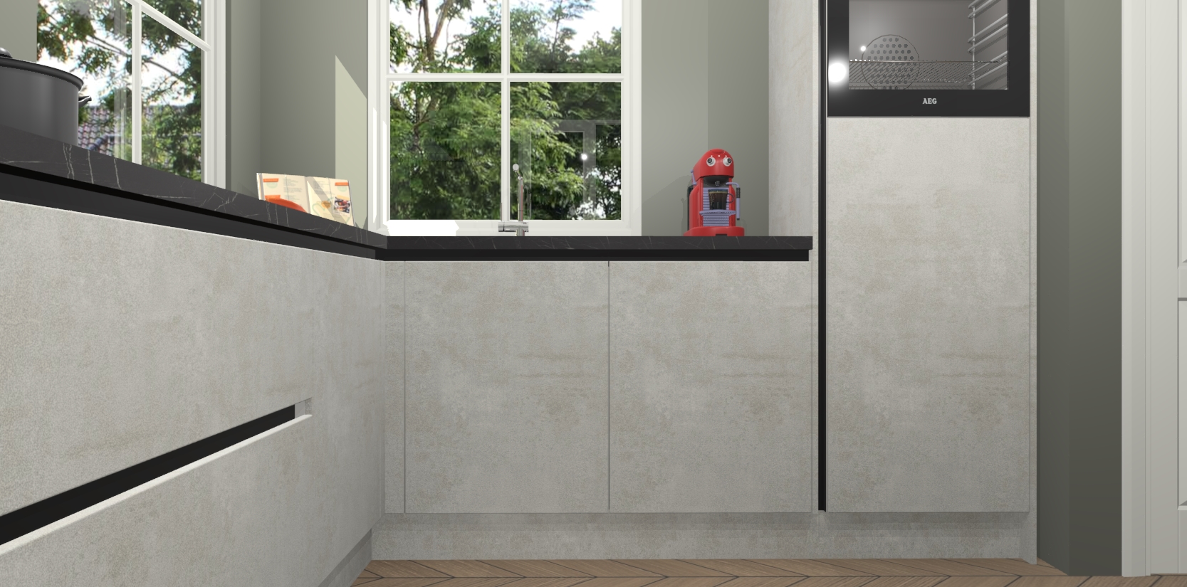 De Beton Opal greeploze keuken Pai bevat vijf essentiële inbouwapparaten - een oven, inductiekookplaat, afzuigkap, vaatwasser en koelkast - zodat u er na levering meteen in kunt. Voor de slimme kopers die weten dat apparaten vaak het verschil kunnen maken tussen functioneel en luxueus, bieden we eenvoudige upgradeopties naar AEG, van oven naar combimagnetron na bestelling of naar een kookplaat met geïntrigeerde afzuiging. En met onze vaste lage prijs en snelle levering binnen zeven weken vanaf de orderbevestiging hoeft u zich geen zorgen te maken over verborgen kosten of lange levertijden die uw droomkeuken kunnen vertragen.