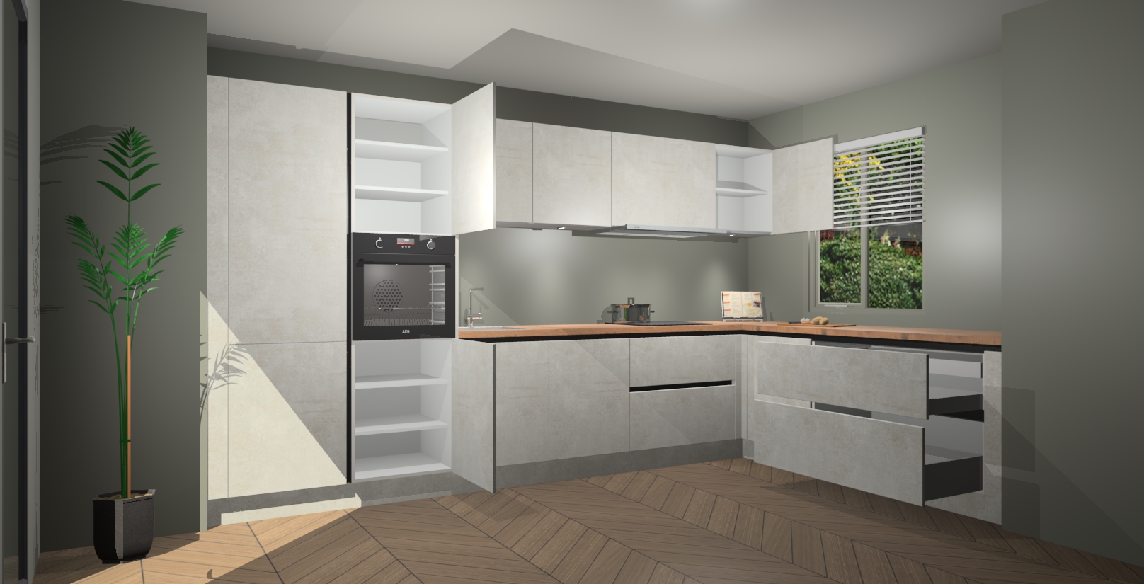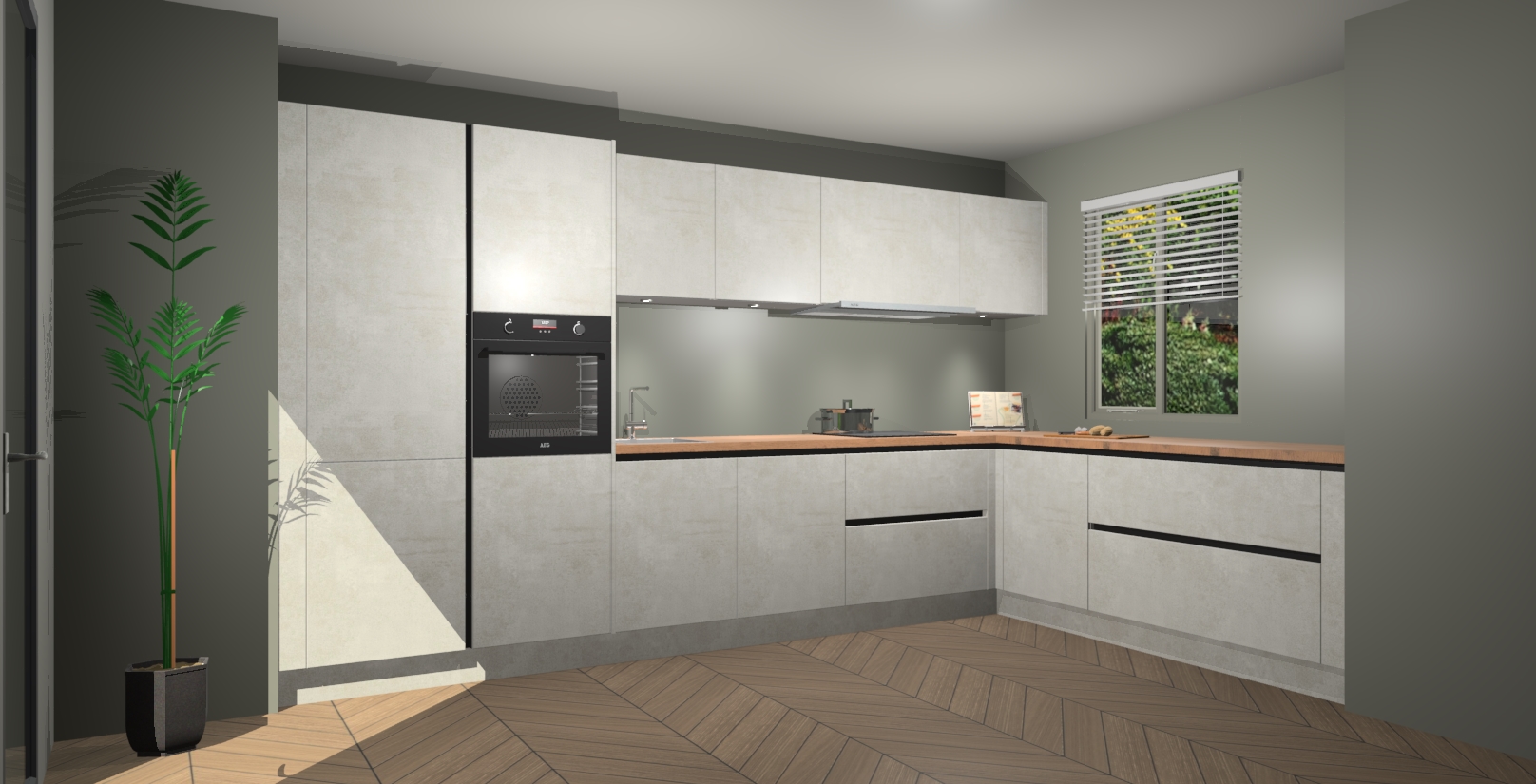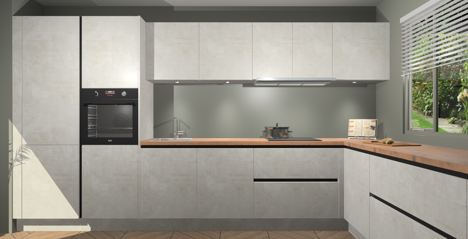 Verwelkom de natuurlijke warmte van de Beton Opal greeploze keuken Petten in uw huis. Deze prachtige hoekkeuken met zijn moderne design en warme houten look geeft u meer dan genoeg opbergruimte om uw comfortabel te voelen in uw keuken. Geniet van soft-close deuren die al uw gasten het gevoel zullen geven dat ze zich in een luxueuze ruimte bevinden.